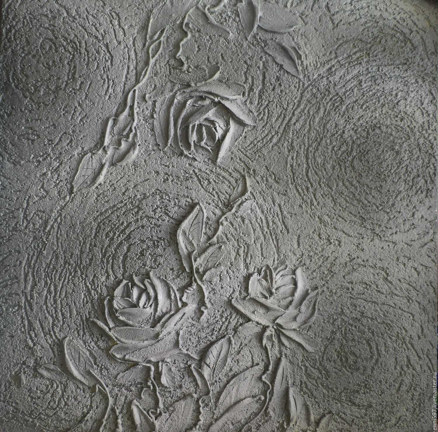 La surface texturée durera de nombreuses années sans perdre son esthétique. Si vous le souhaitez, il sera possible de mettre à jour la peinture du panneau. Il existe également des méthodes non conventionnelles pour peindre une surface avec un relief, par exemple avec un tissu écrasé sur un rouleau - des espaces vides sont créés. La plasticité du mélange et la disponibilité de buses prêtes à l'emploi sur le rouleau - fonctionnent avec plaisir.