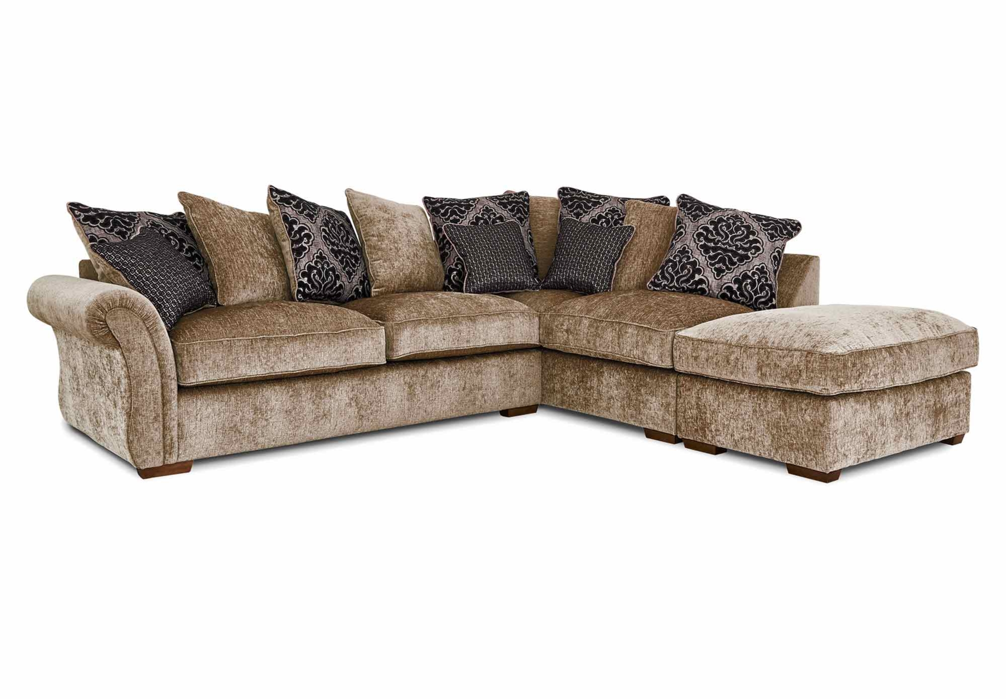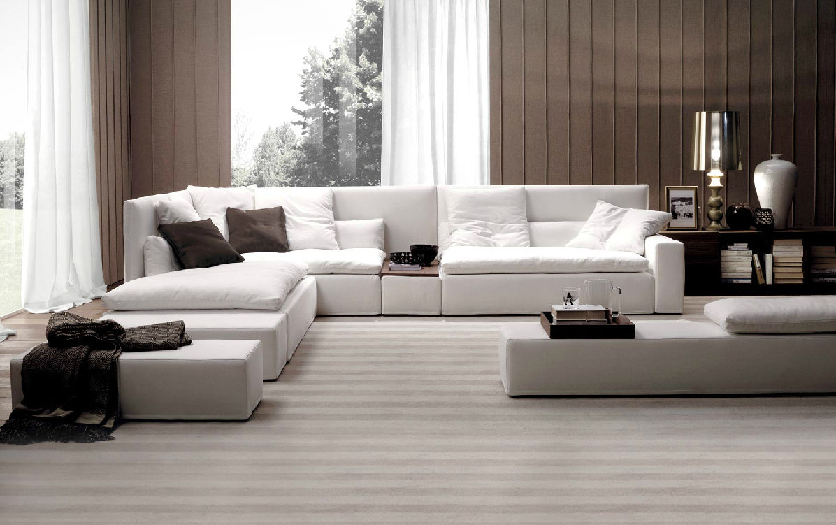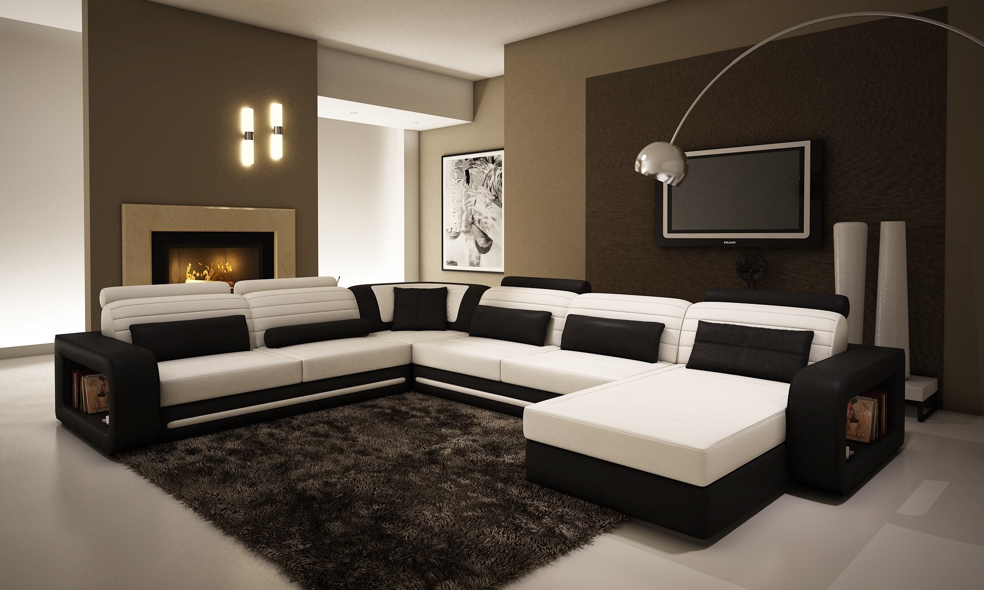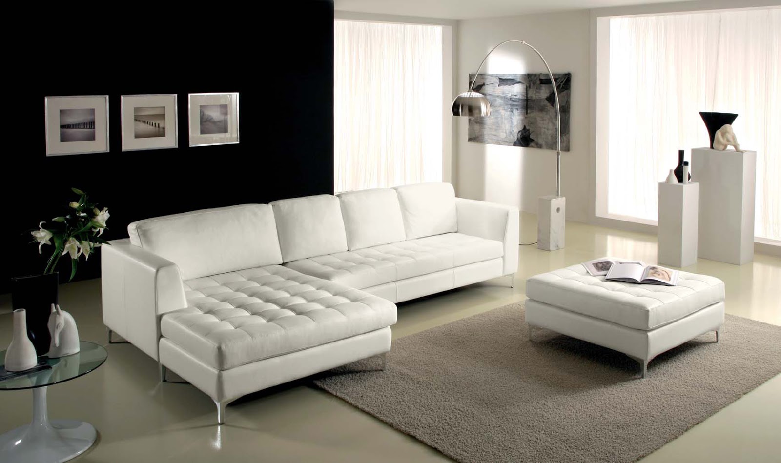 Il y a une autre solution à l'intérieur du salon avec un canapé d'angle. Un endroit idéal pour recevoir des invités est une zone de loisirs où le lit de bronzage se compose de deux parties. L'avantage de ce canapé est qu'il se transforme, lors d'une réunion officielle, en un simple canapé avec un pouf complétant son intérieur. En l'absence d'inconnus dans la maison, un pouf coulissant, assorti en hauteur à un canapé, en transformera n'importe quelle partie en un lieu propice à la détente en position allongée.