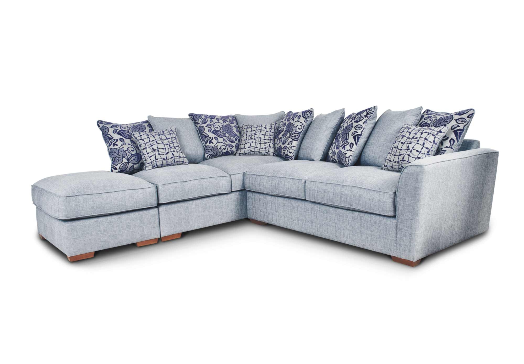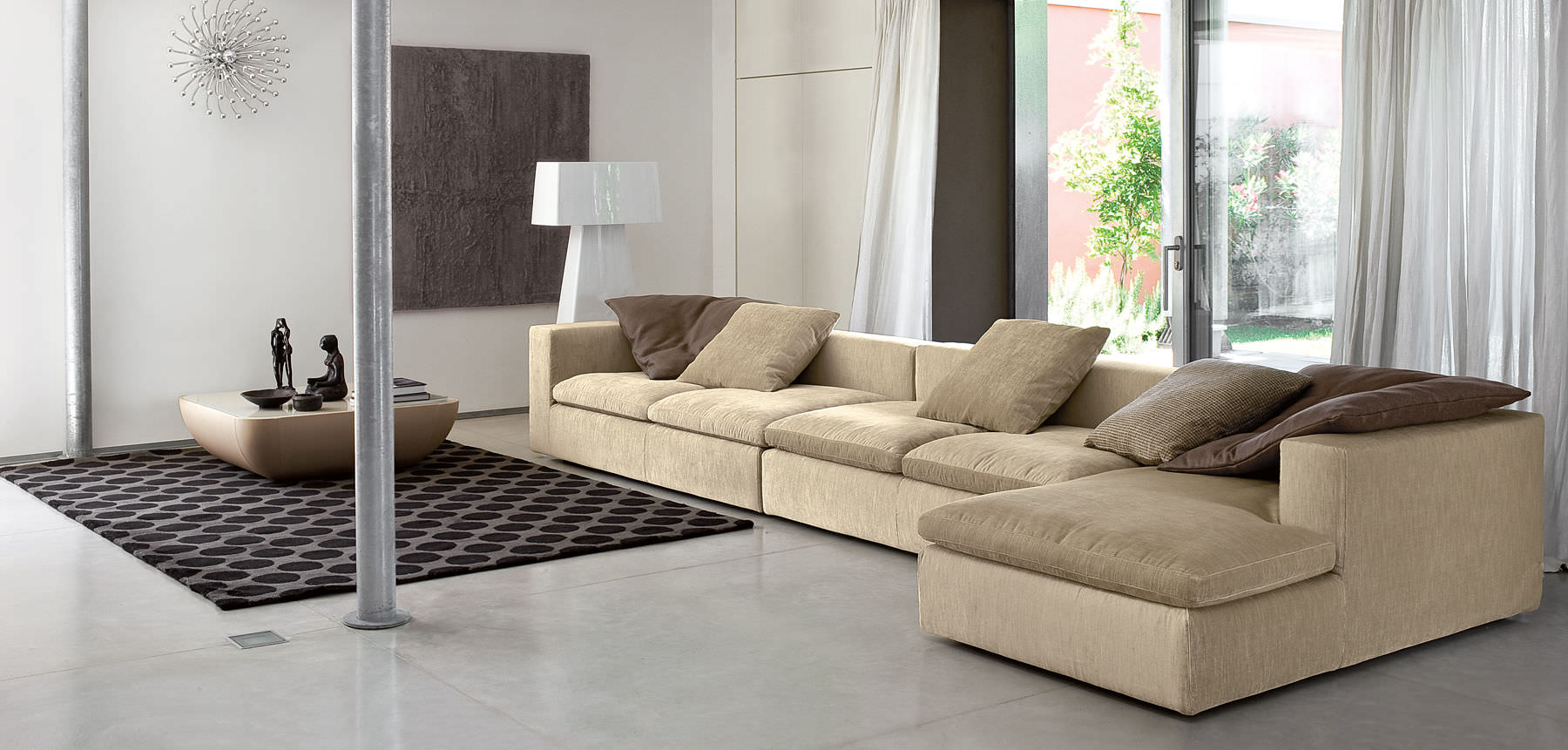 Un canapé composite peut être basé sur deux caissons ottomans, où une chaise avec un siège élargi au dos servira d’élément de liaison. Séparément, il est difficile d’utiliser l’élément d’angle comme siège, mais cela permet de changer facilement le coin de connexion du canapé de droite à gauche, et inversement.