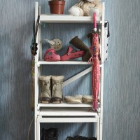 Les étagères peuvent être installées de manière permanente et temporaire. Dans le cas où cela gênerait la libre circulation dans le couloir, il peut être facilement plié. Lorsque vous attendez des amis ou des parents lors d'un événement familial, lorsque le couloir est généralement bouché par des chaussures, vous pouvez vous procurer un casier mobile.