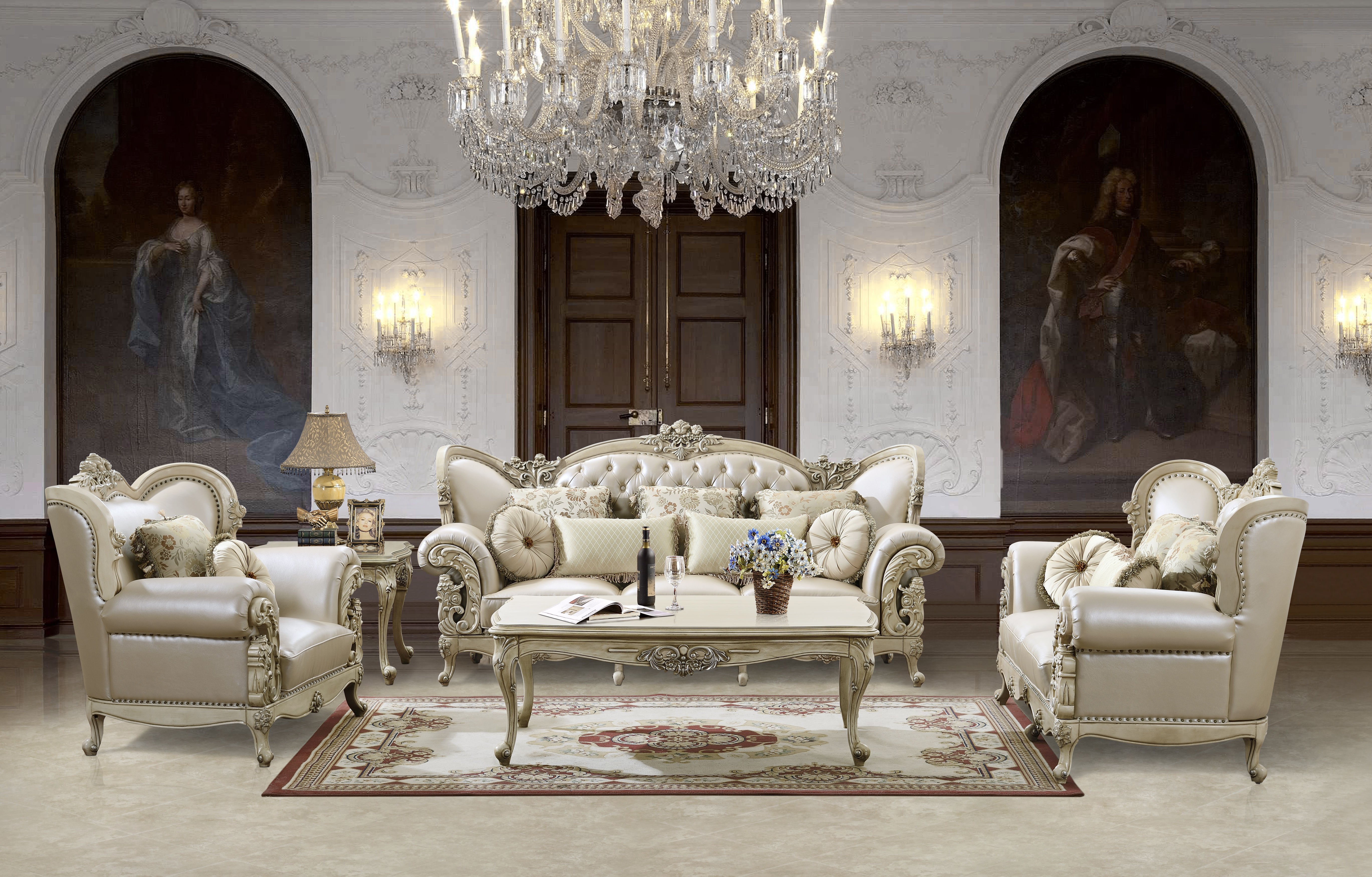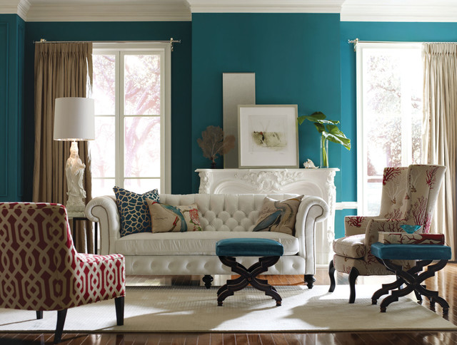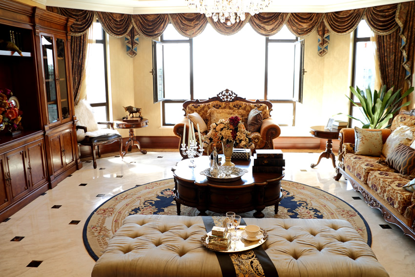 La règle principale pour le salon est le respect d'une décision de style unique. Les meubles modulaires de style contemporain contrasteront fortement avec les vitrines en bois sculpté. Ils seront redondants à l'intérieur. Une table en verre dans une version moderne ne ressemble pas à un grand pouf à pieds incurvés. Ces poufs sont fabriqués dans le style baroque. Ils nécessitent des ajouts appropriés.