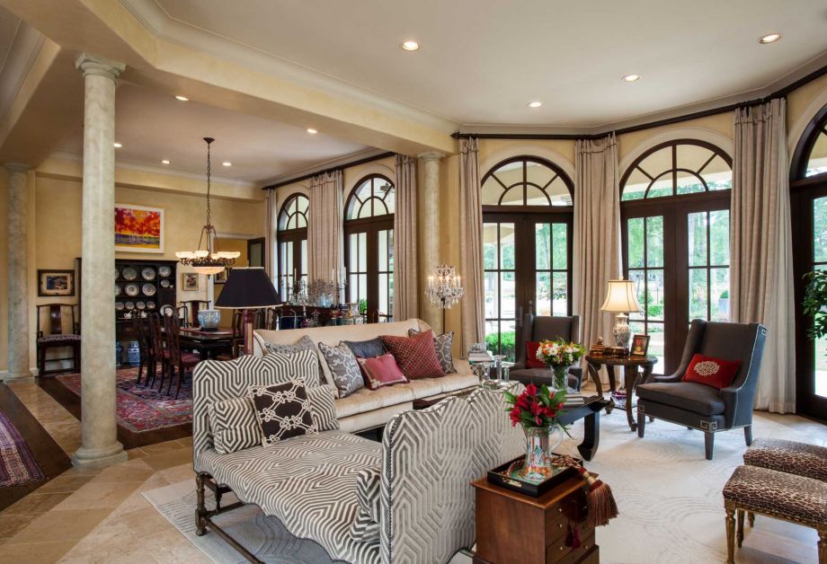 Vous pouvez correctement équiper une salle de séjour dans un chalet ou une maison de campagne. Dans une maison, une telle pièce n'est pas limitée à des mètres carrés, comme dans un appartement. Le projet peut prévoir une pièce spacieuse. En conséquence, il est utilisé comme une salle complète pour recevoir des invités. L'équipement est destiné à un séjour de détente et de détente. La plupart des hôtes préfèrent les meubles de style classique à leurs chambres. Elle ne se distingue pas par l'innovation, l'extravagance ou la prétention.