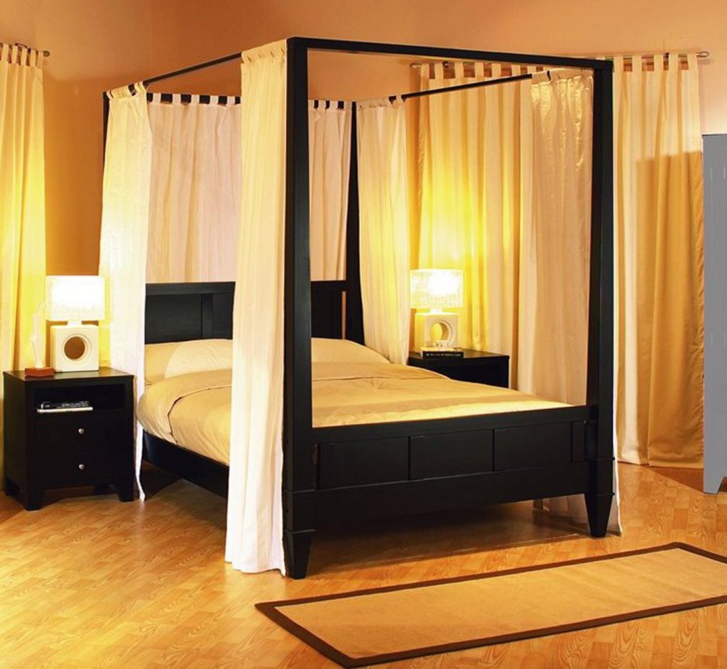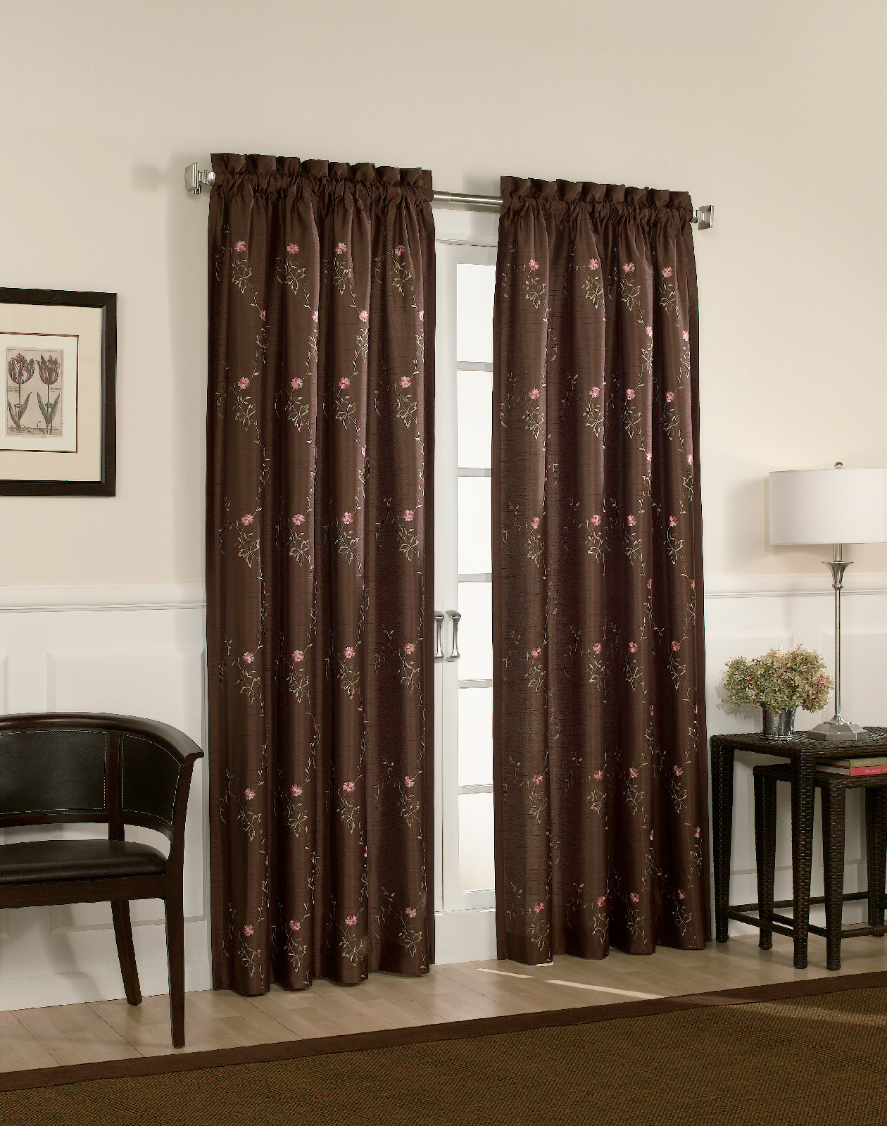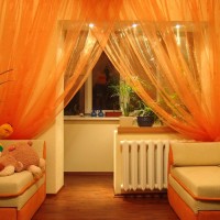 Une solution assez commune pour les chambres à coucher sont des rideaux sur les œillets. Ils ont l'air parfait et élégant, ainsi que peu enclins à la déformation.