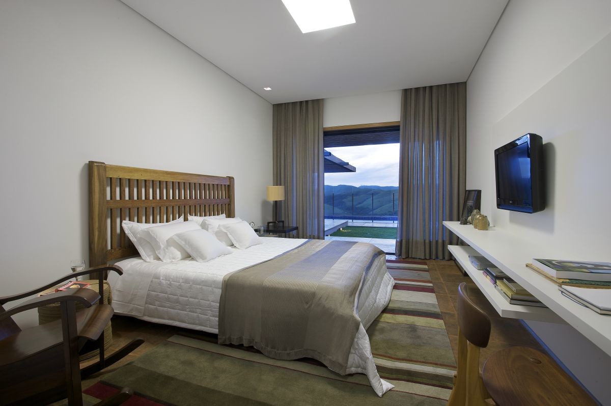 Le minimalisme est très similaire à la haute technologie. Ces styles se ressemblent en agrandissant l'espace en minimisant le mobilier d'intérieur et les tons apaisants. Il n'y a pas de verre et de métal dans ce style, de sorte que la pièce adopte une atmosphère plus familière. Le mobilier est minimaliste en bois et a une finition mate. Pour les rideaux de la chambre, lorsque vous utilisez le minimalisme, vous devez choisir des couleurs calmes qui sont utilisées dans l’ensemble de l’intérieur afin de ne pas attirer l’œil, mais de s’intégrer le plus possible dans l’ensemble.