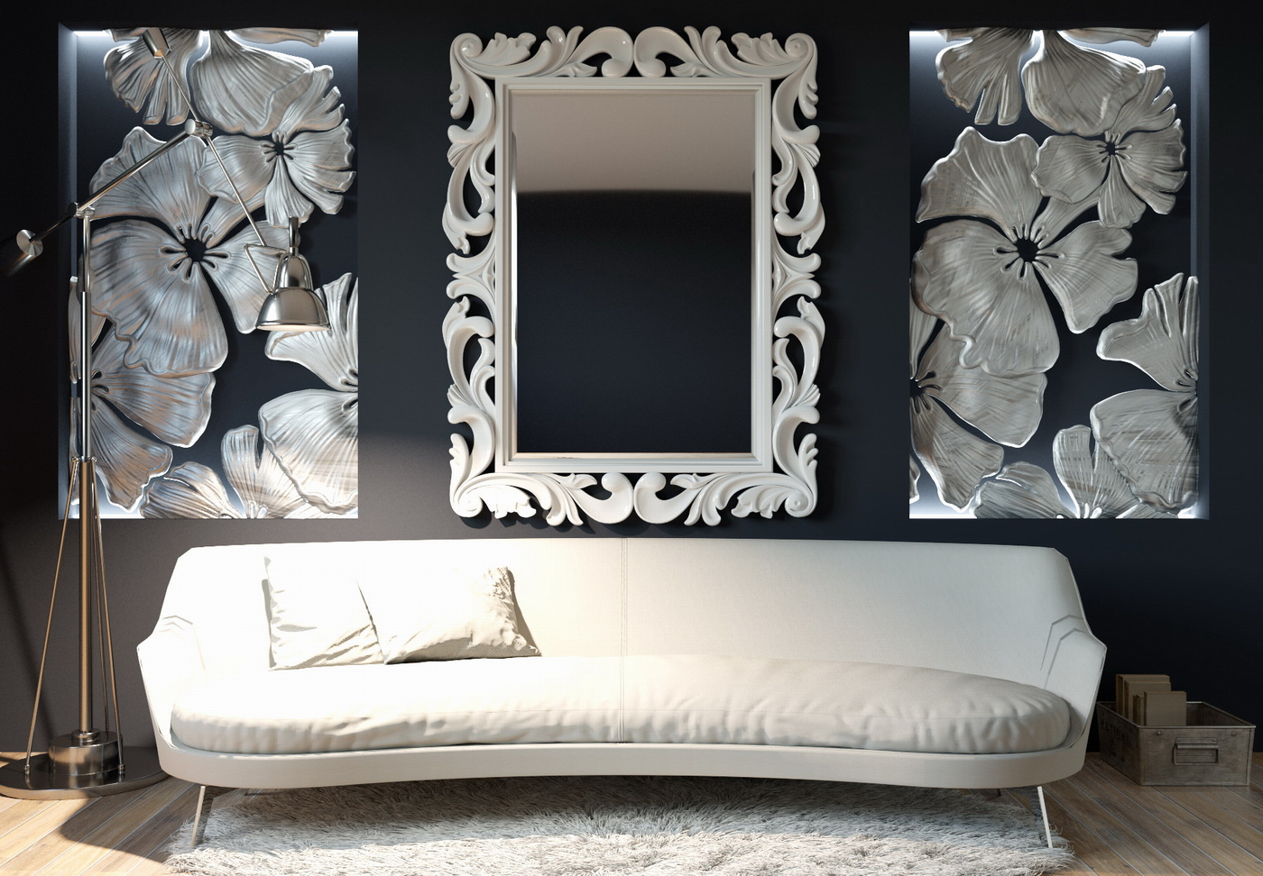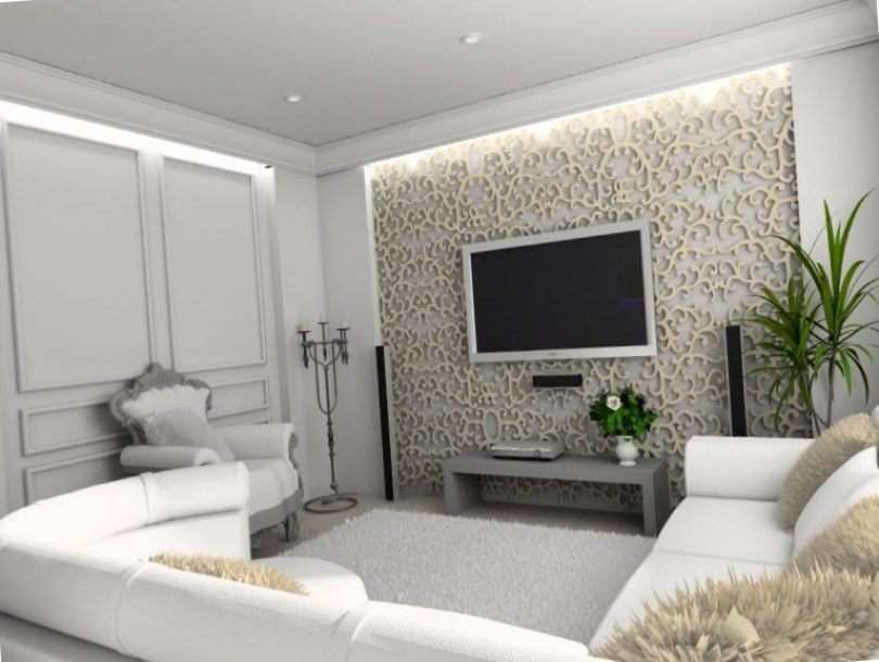 For lovers of refinements, voluminous details for walls made of gypsum and other materials are suitable: monograms and patterns. These elements are used to create a luxurious and artsy interior. Decorating with embossed patterns should really be luxurious, but in moderation - there is no need for the expensive to be flashy. Otherwise, it will look like the situation in the houses of gypsy barons or a room in a cheap hotel.