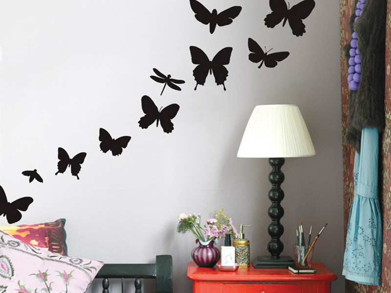 The option of interesting wall decoration can be even simpler: choose a sticker, buy, stick, and forget. Black stickers look great on a light or white background. As a rule, trees, flowers, various toons are popular. The simplest elements of the zentangle are good. It is desirable that the background is monophonic and the patterns on the wallpaper do not swear with a sticker.