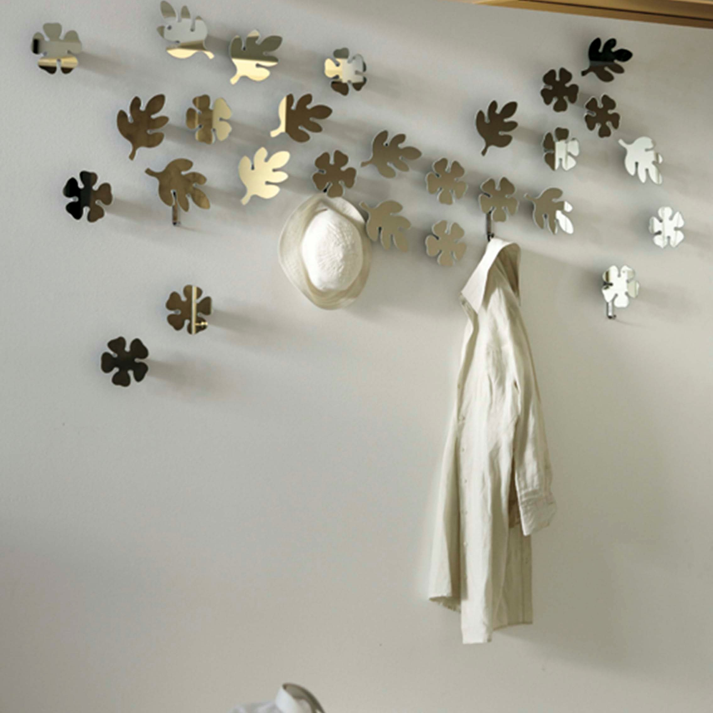 A beautiful element of decor can even be ... a hanger. Simple hanger with hooks for outerwear or other clothing. A base is attached to the wall, which is often found in the form of flat tree branches with ordinary hooks. Ideas are the most eccentric: bicycle handlebars, antlers, plumbing taps. A simple rough board as a basis will give the entrance hall a shade of primitiveness and naturalness. Experiment with a hanger for the kitchen: what to hang spatulas and tongs for?