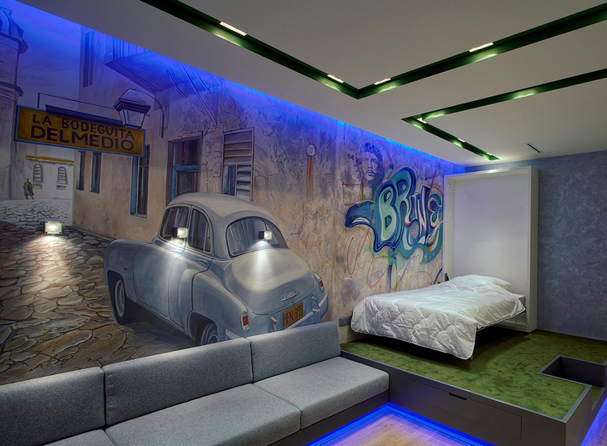 A non-standard solution is a painting on the wall, or art painting, the idea of which can be realized together with the artist-performer. This option is suitable when you are not inclined to frequent changes or treat painting only as an element of decor and you will not be sorry to get rid of a boring picture.