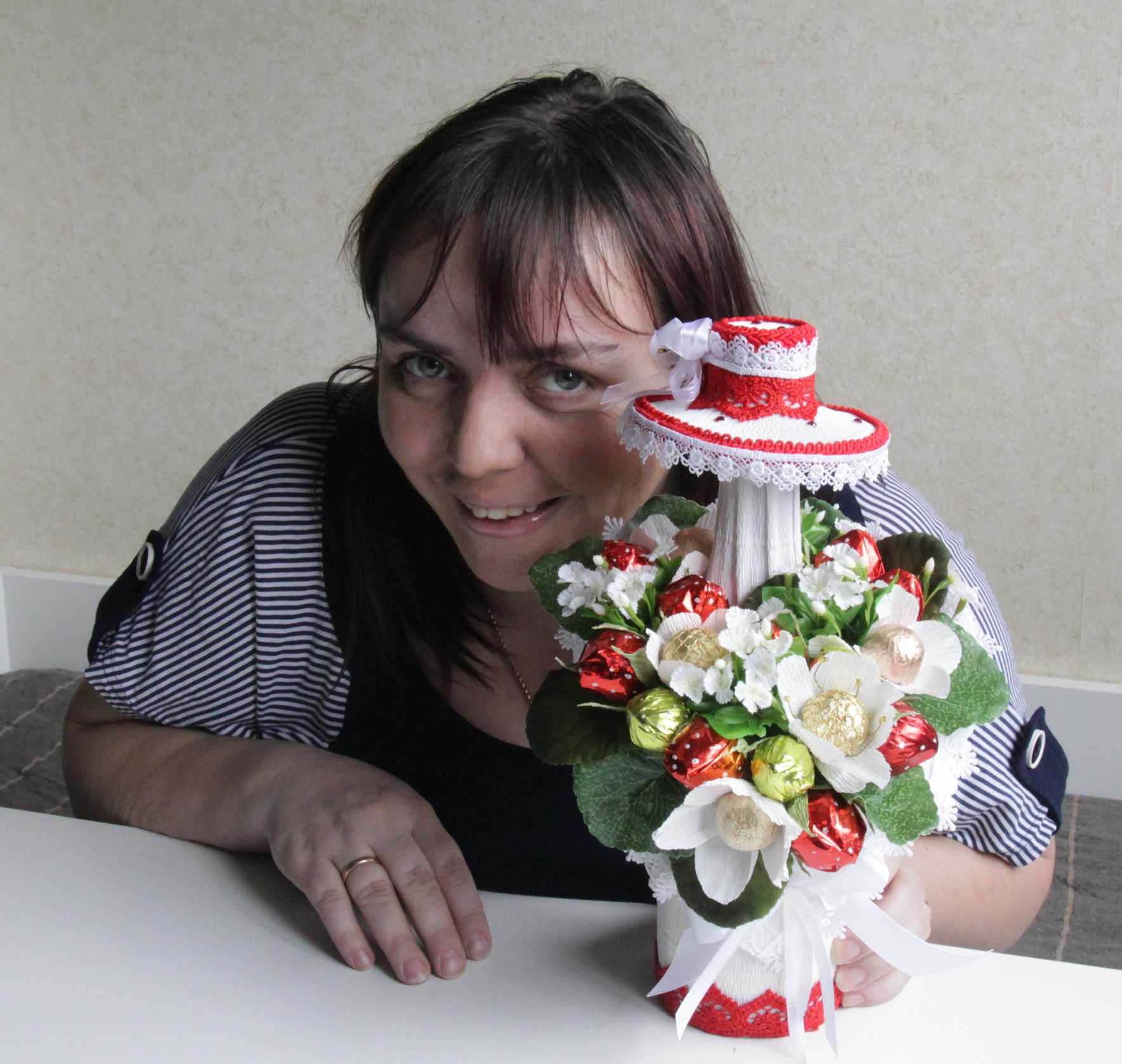 Candy compositions are created from different products, in all styles and for any occasion. A bouquet or a figurine of sweets can be decorated romantically and presented to your soulmate on Valentine's Day, or you can make them creepy and give them to a friend for Halloween.