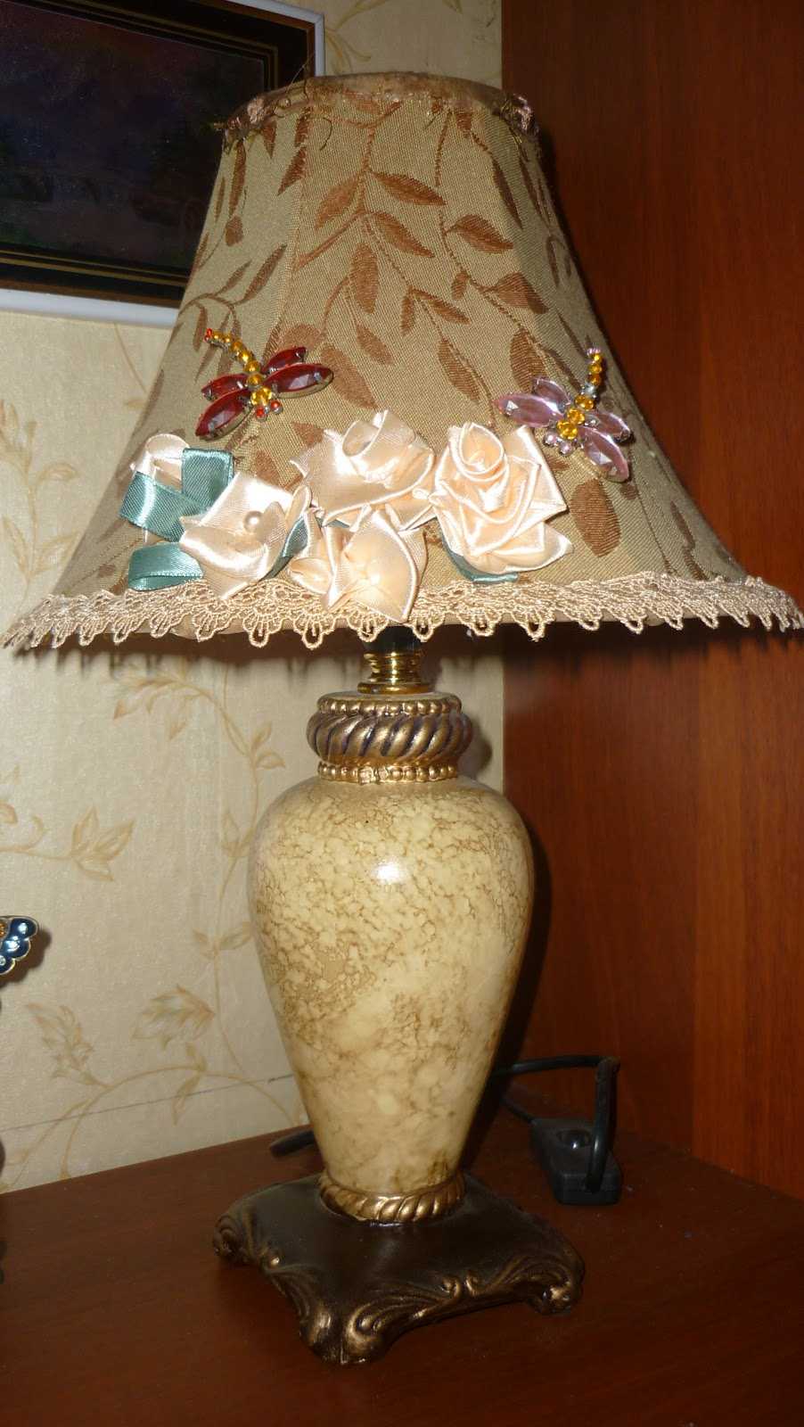 Making a lampshade with ribbons and beads
