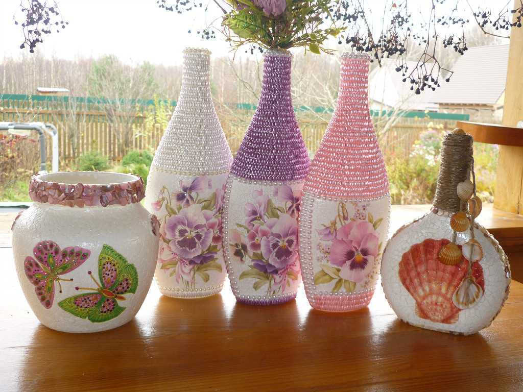 - 1 Methods for decorating glass bottles for rooms in different styles