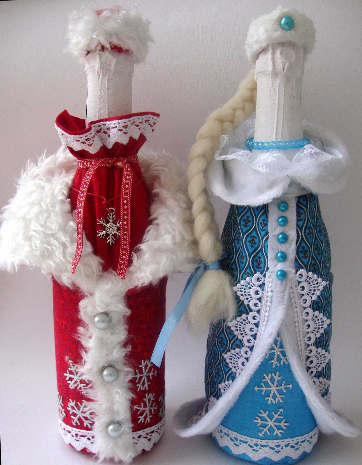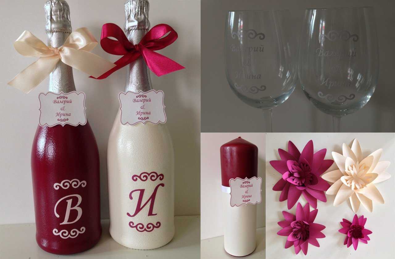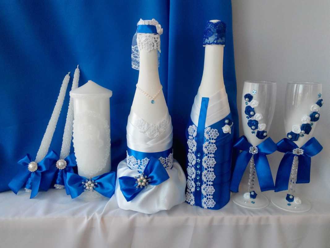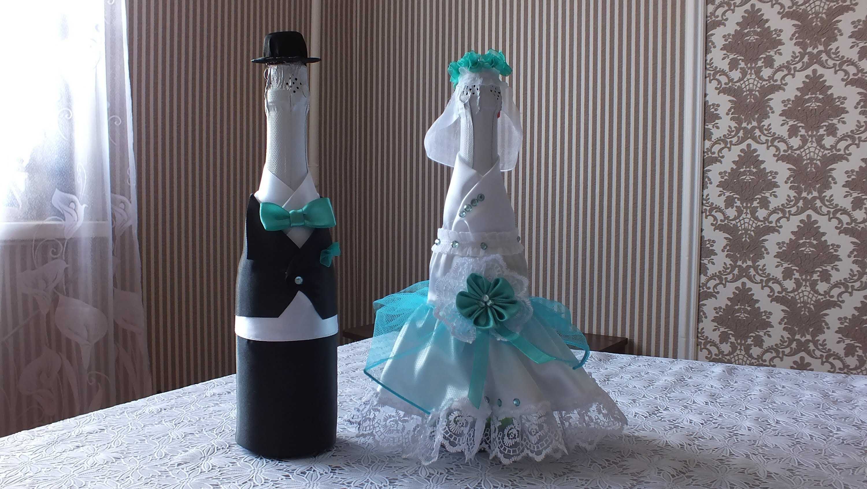 Any idea is good if everything is done neatly and tastefully, the seams are hidden, the decor in moderation. Additionally, it is worthwhile to work on the manufacture of such additions to champagne as rings, angels, flowers, pigeons and hearts. Sometimes they use photos of the bride and groom, printed on thin paper (gloss).