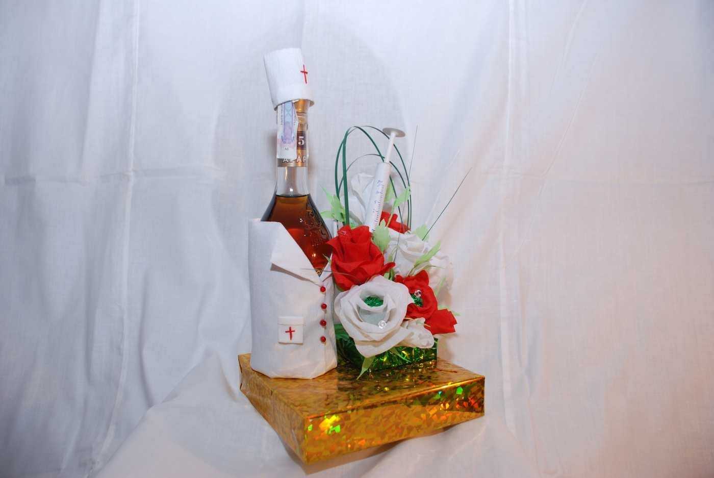 Decorated bottles are not drunk during the wedding; they are left as a souvenir. This champagne is printed on the wedding anniversary and on the day of the first discharge from the hospital.