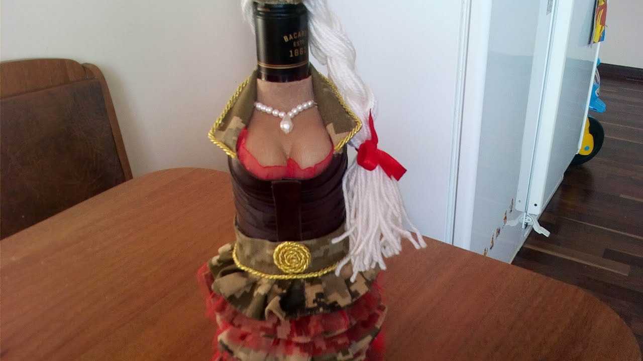 In the manufacture of skirts there may be options. The more magnificent the accessory, the more luxurious is the decoration of bottles with ribbons. You can sew it yourself by stitching lace assemblies, or purchase an elastic band with a frill or corrugated edge. Such an addition on an elastic band is easiest to put on and fix on a bottle, but it is advisable to minimize the tension.