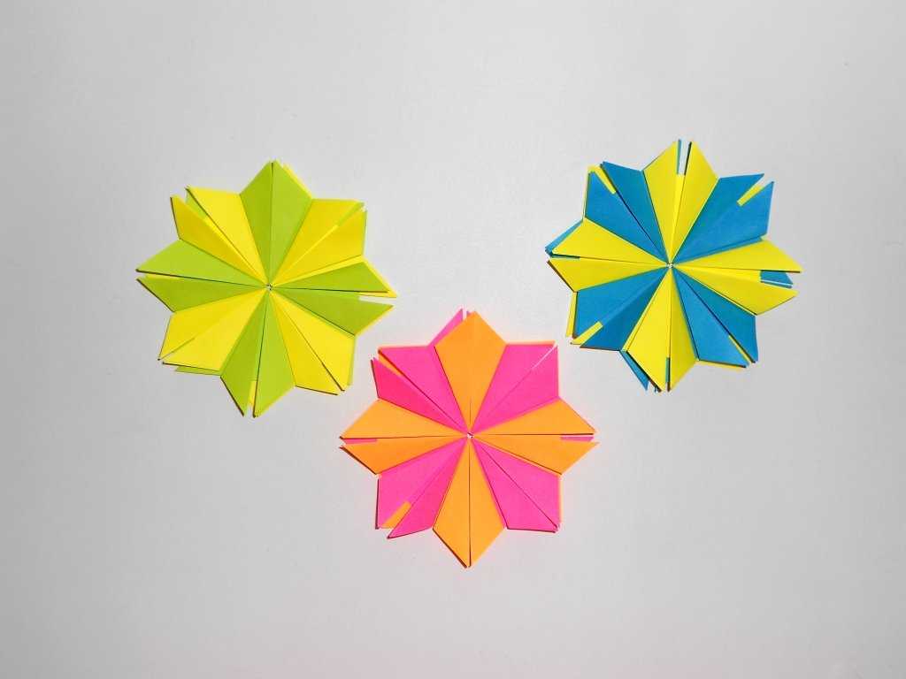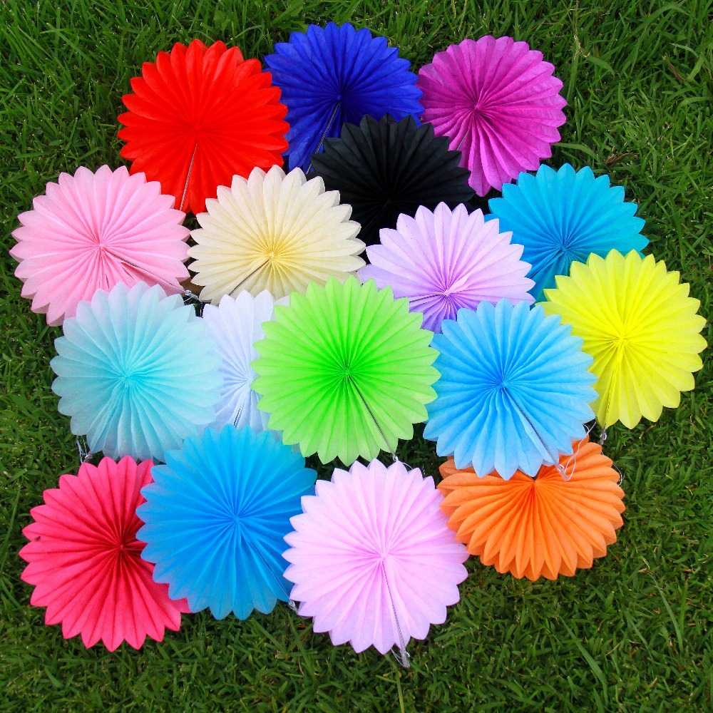In childhood, everyone made fans of paper, folding it with an “accordion”. By the same principle, large fans are made that can be placed on the wall, and flowers. For them, colored paper is folded "accordion", for a flower, the sides are connected in a circle. It is important that the sheet of paper be in the form of a long ribbon. A paper flower is glued to the center.