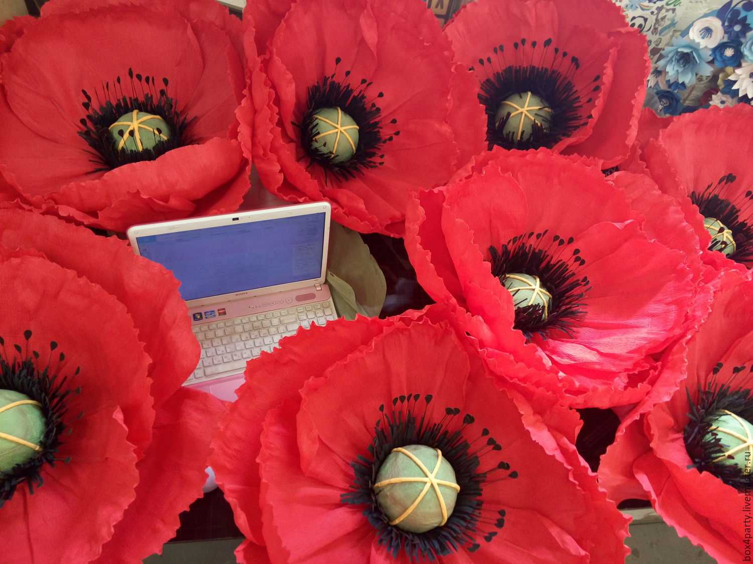 Fans and flowers made of paper