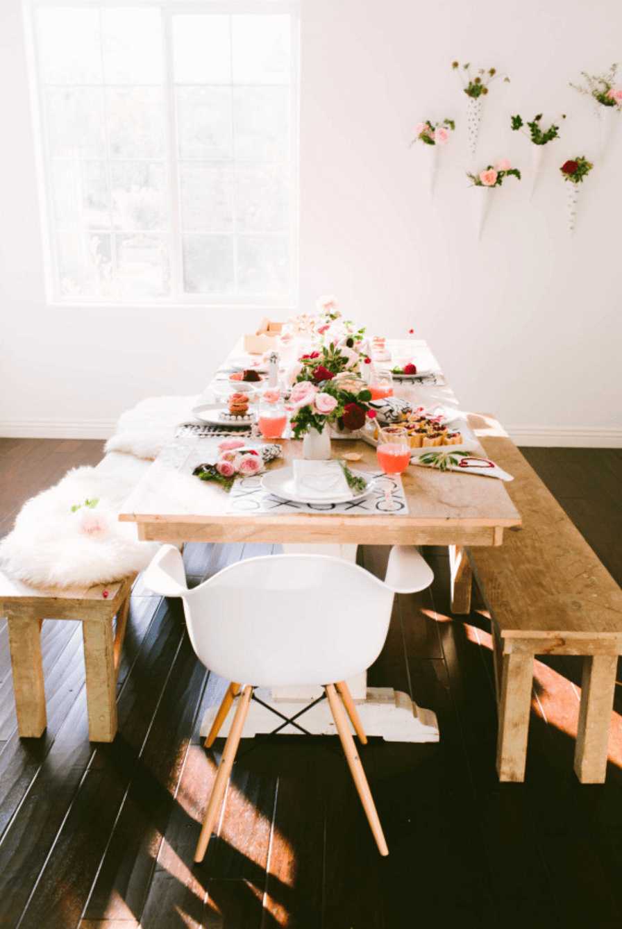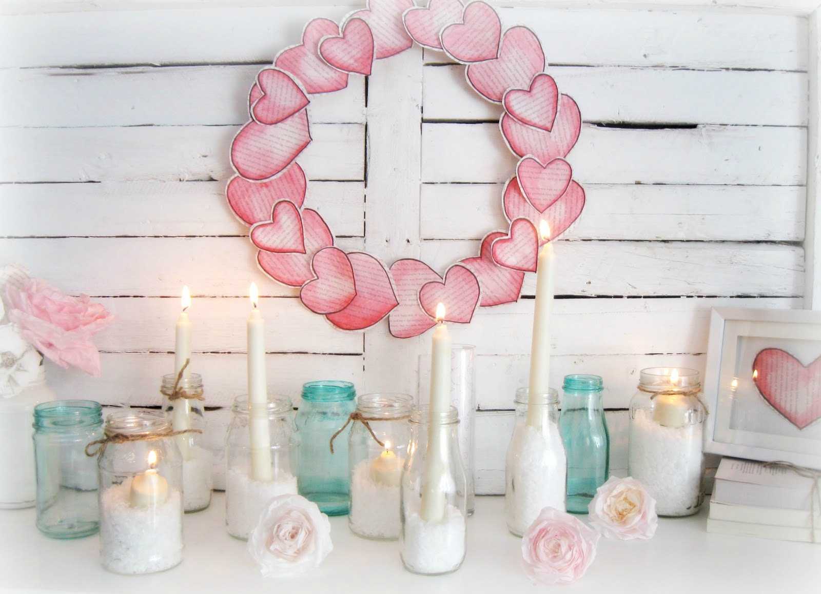You can add lights to the windows by hanging a garland, create paintings using lip silhouettes and photographs, and place them on the walls. Valentine's Day decor has no limits.