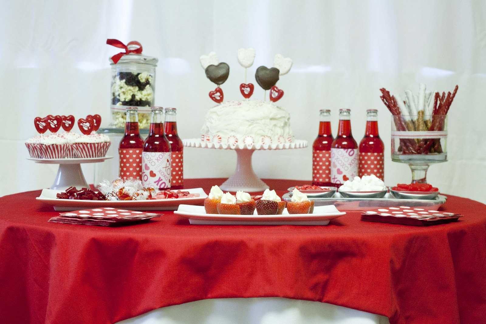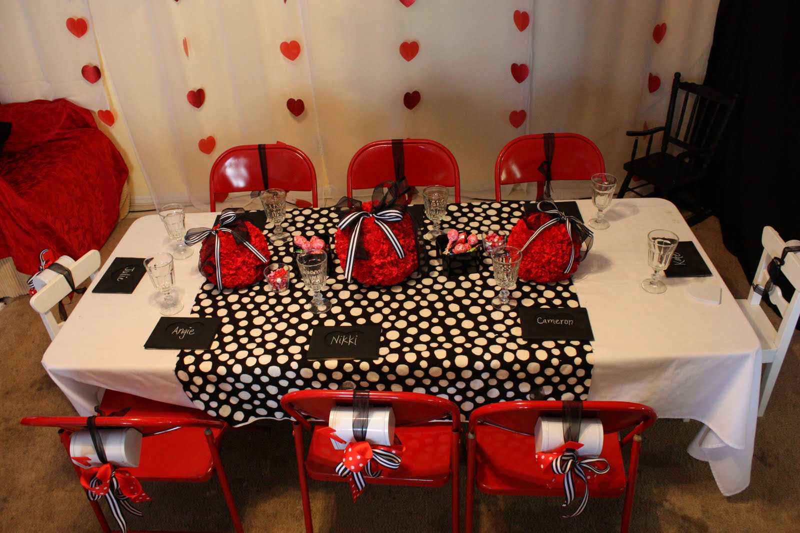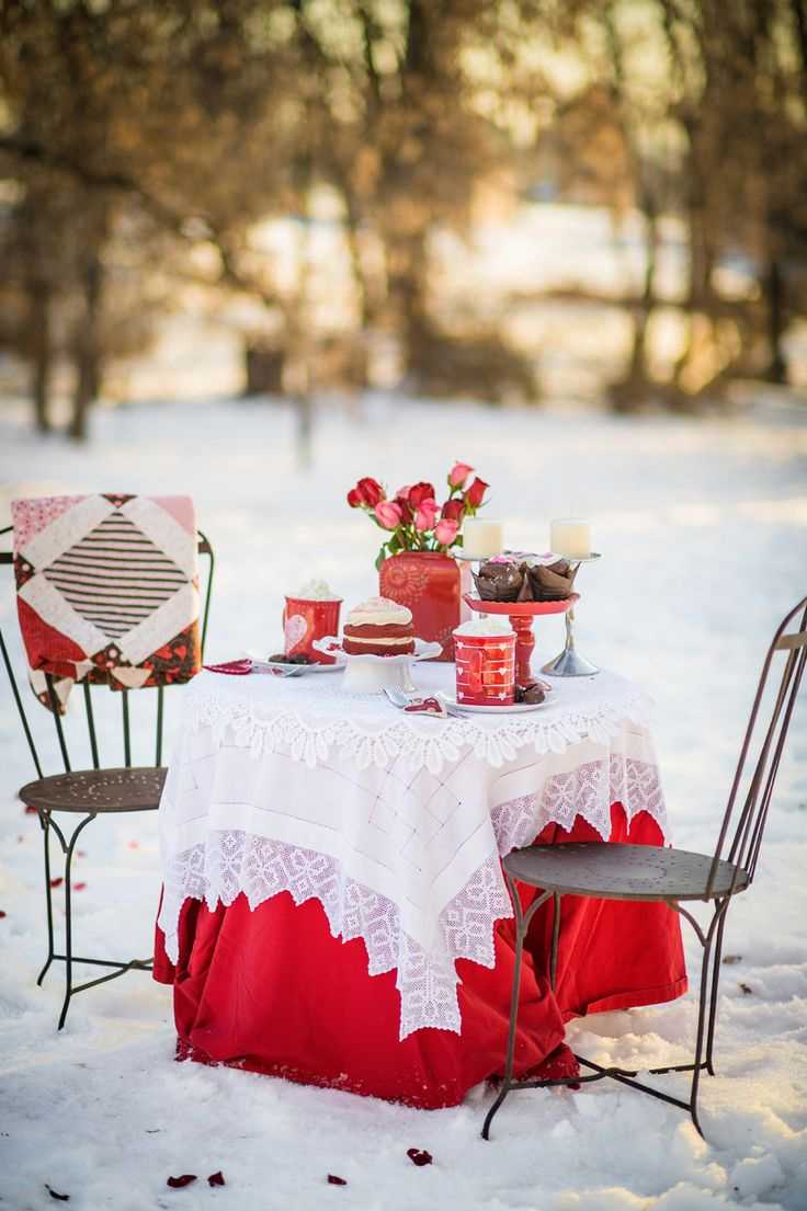 In addition to candles on the table, you can pour rose petals or valentines, put a garland (it will look better under a red tablecloth), put fresh flowers. The image is good to complement the napkins folded in the shape of a heart. And, of course, a delicious dinner will complete the symphony.