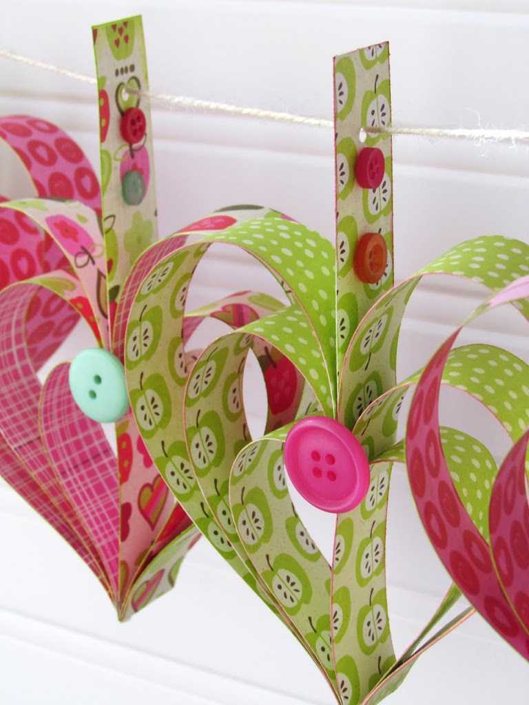Let's start traditionally with paper. From this material it is easy to create valentines of various colors and modifications. Next, place them in a chaotic order around the house, tie a garland or hang on a chandelier and curtains. An original solution will be the manufacture of a "love tree" by decorating a dry branch and a flower pot. This option is great for creating jewelry with your child.