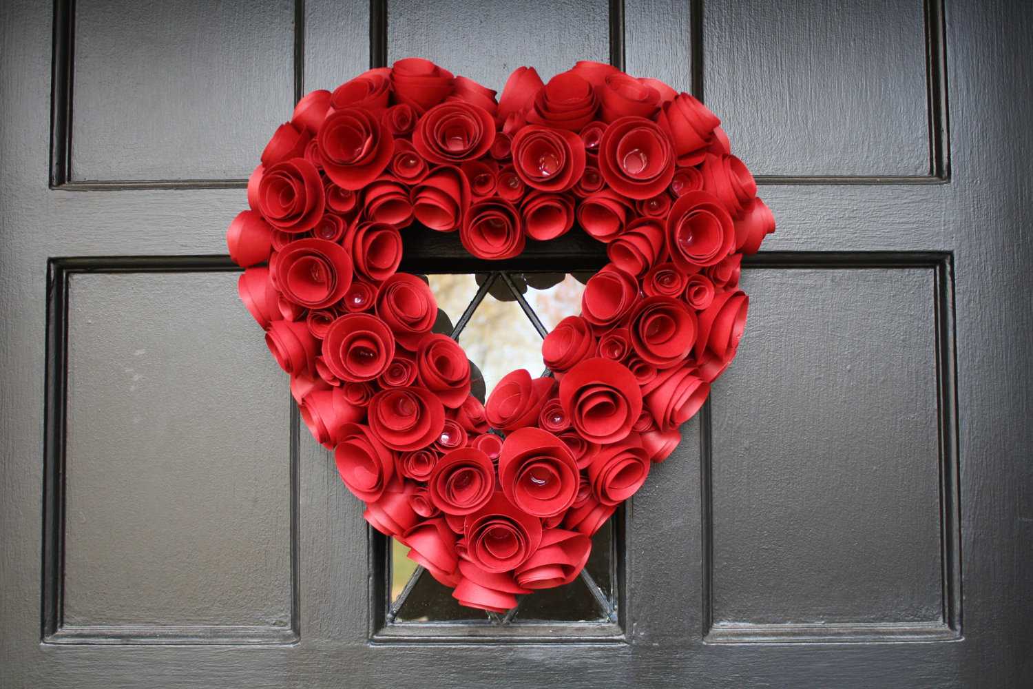 From natural materials you can build a wreath in the form of a heart and place it on the front door.