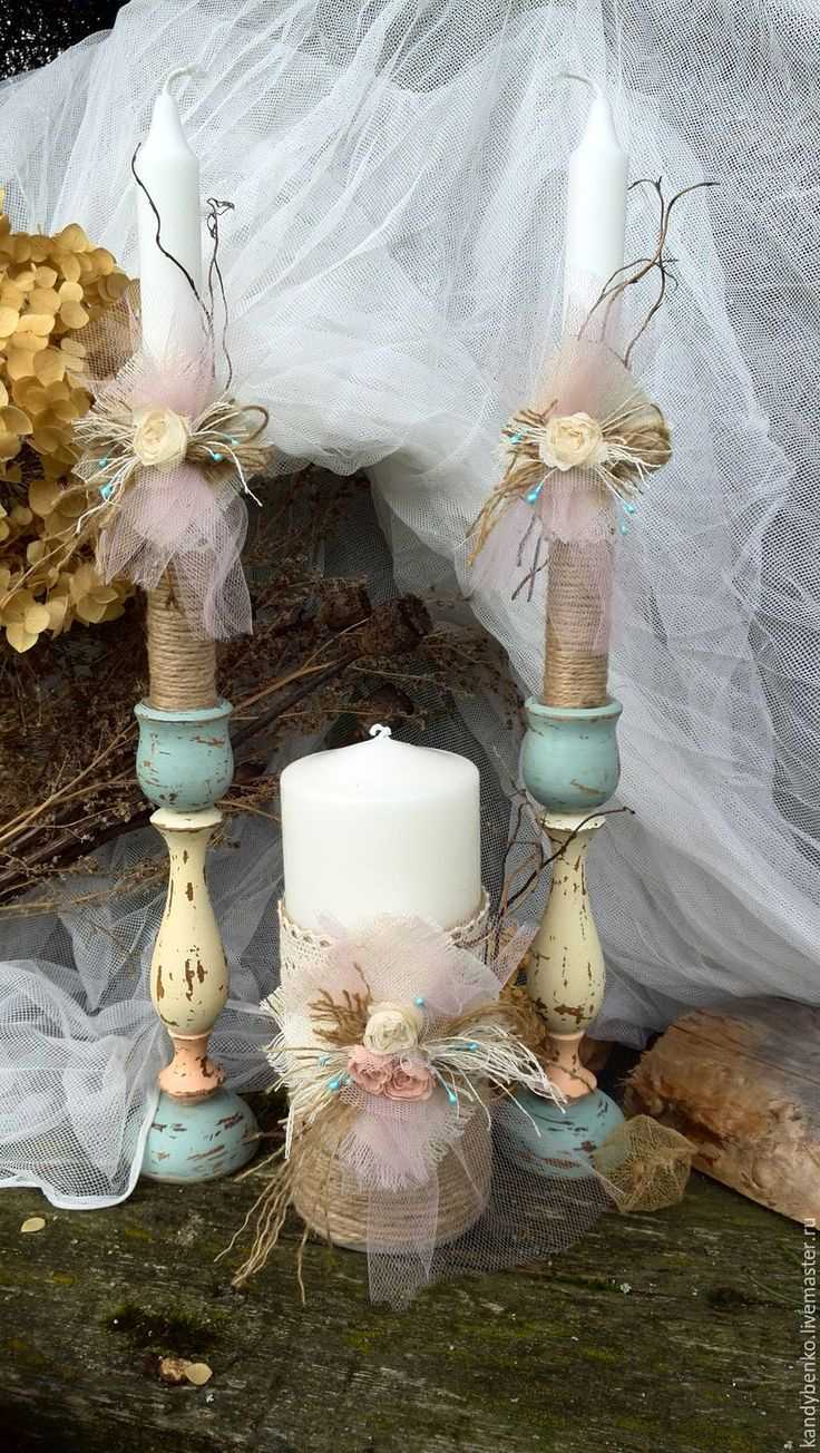 The ceremony of ignition of the "family hearth" is an indispensable part of the wedding celebration. Candles are decorated for him, observing the style and color palette of the wedding. To decorate them, you can use: