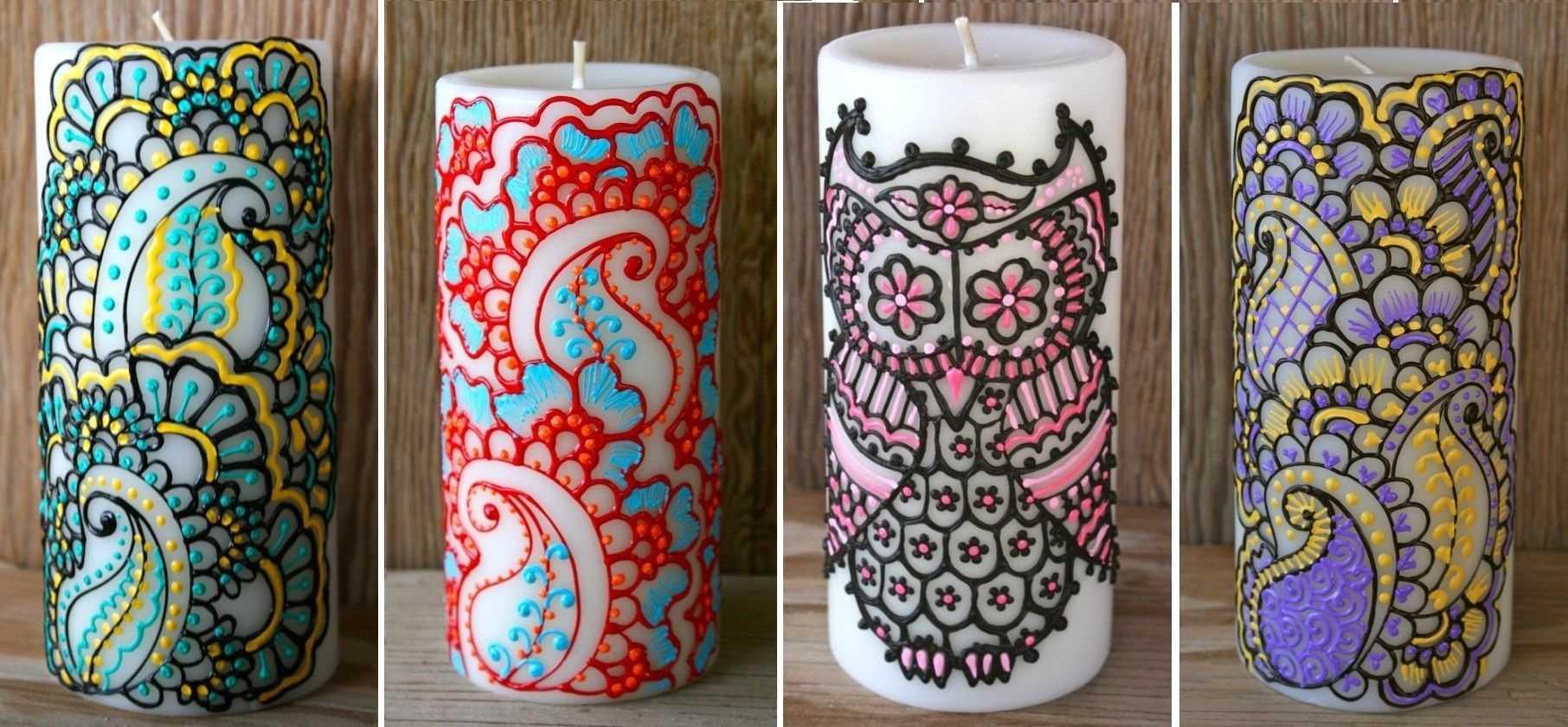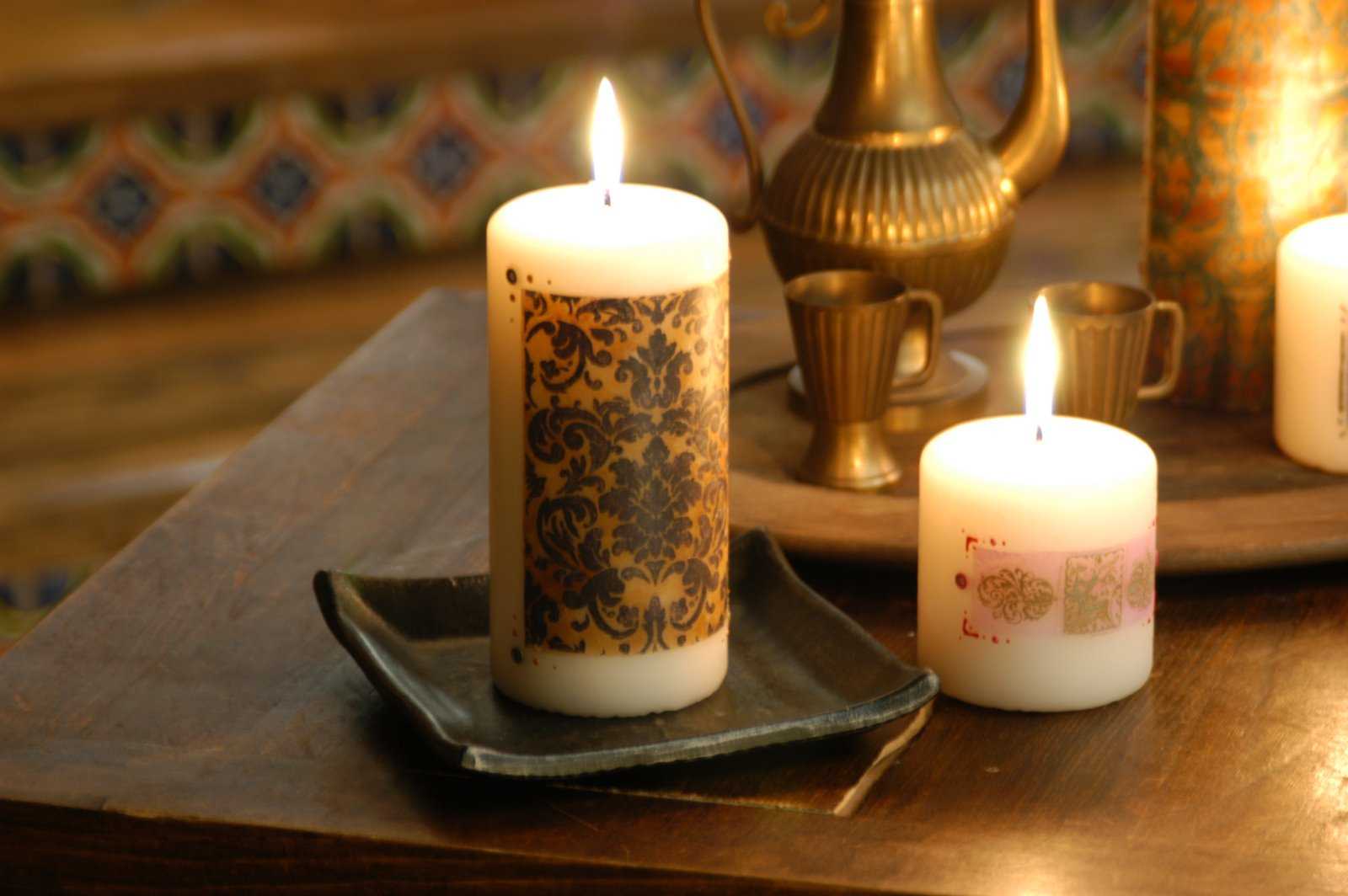 Another option is to put the napkin elements on the candle, cover it with wax paper on top, and then lightly heat the candle with a hairdryer.