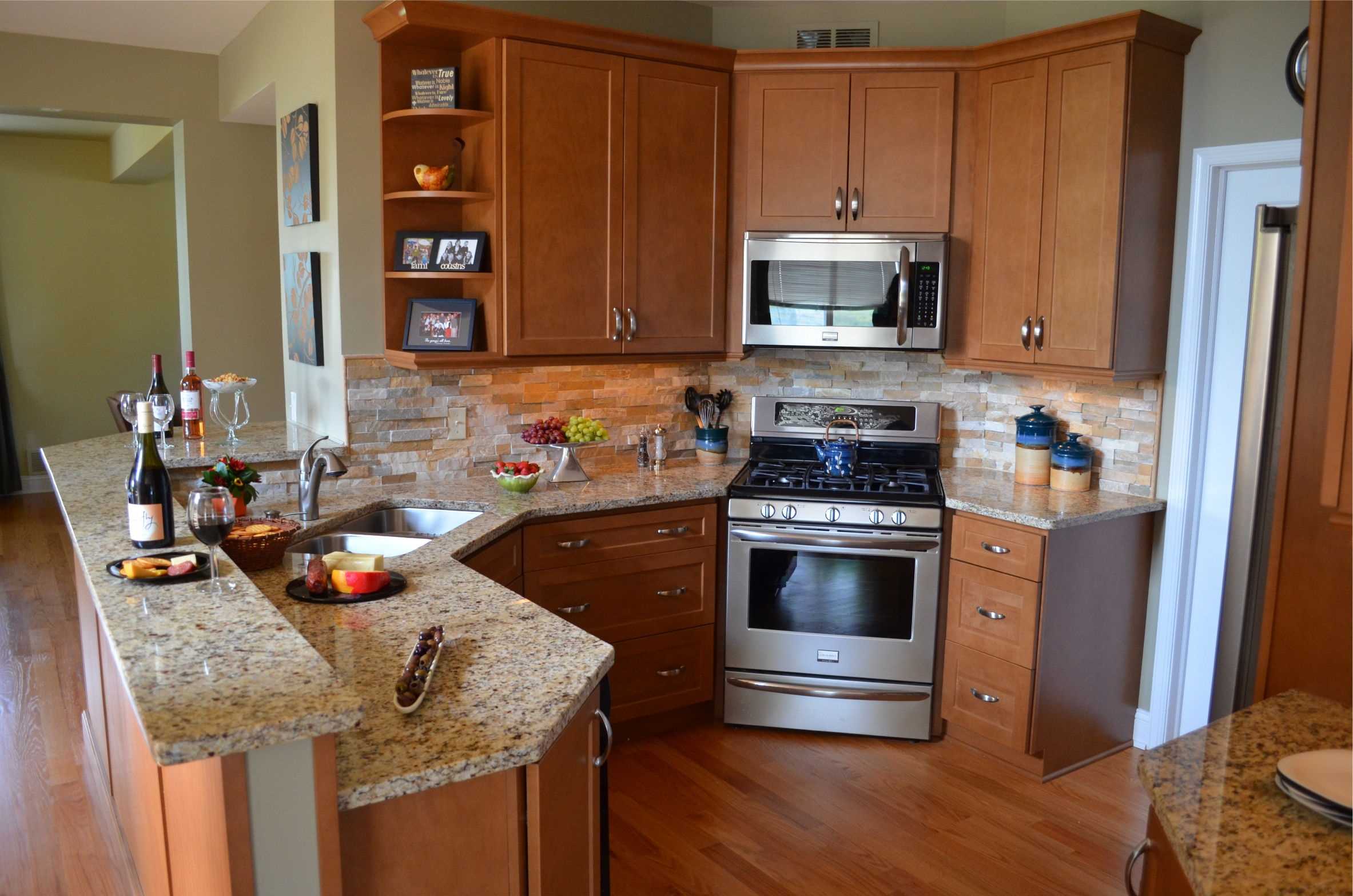 Traditional kitchen furniture and appliances, corner wall cabinets and doors |