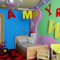 - The most appropriate volumetric letters in the interior of the bedroom of younger students or in the children's room. These elements are relevant in everything from the pattern of the upholstery of the sofa and bed linen to the supports for bookshelves in the form of letters and numbers. Children willingly participate in making such a decor with their own hands.