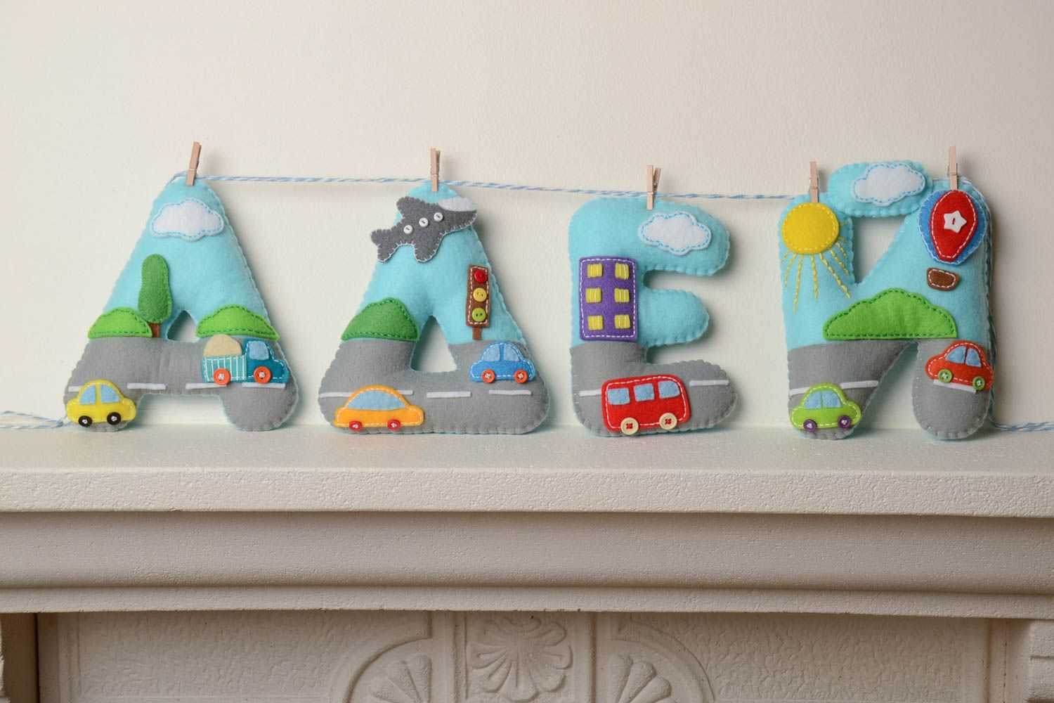 For the decoration of living quarters, you can use any malleable material or work on the experience of needlework. It is better to include the whole family in the work of creating creative letter design, where everyone should do what he can do. Good examples are in our photo gallery.