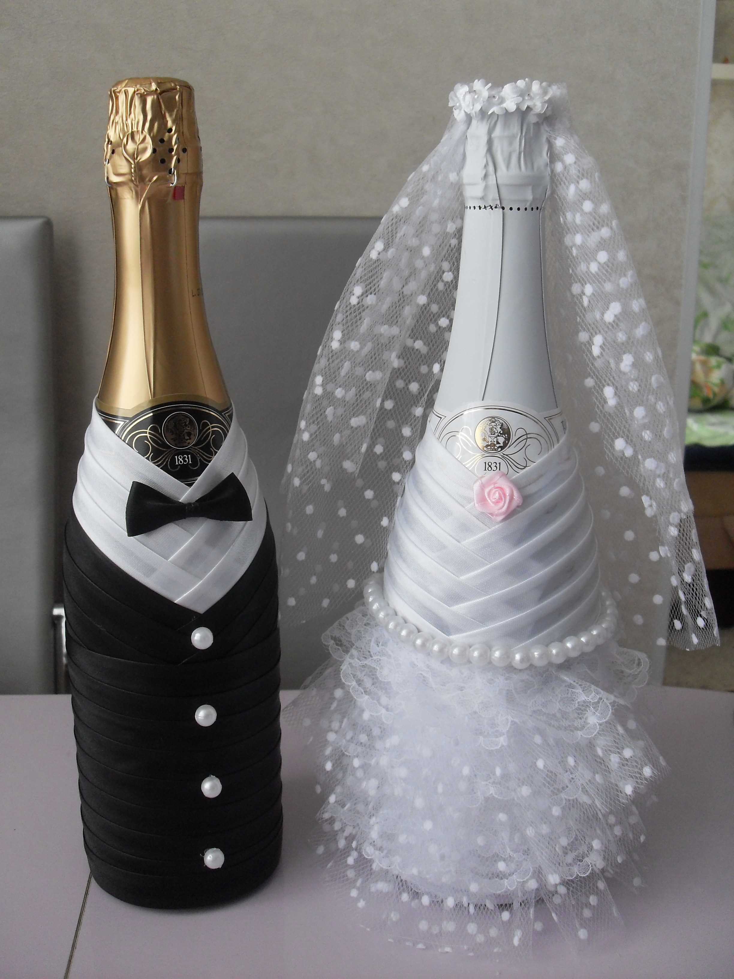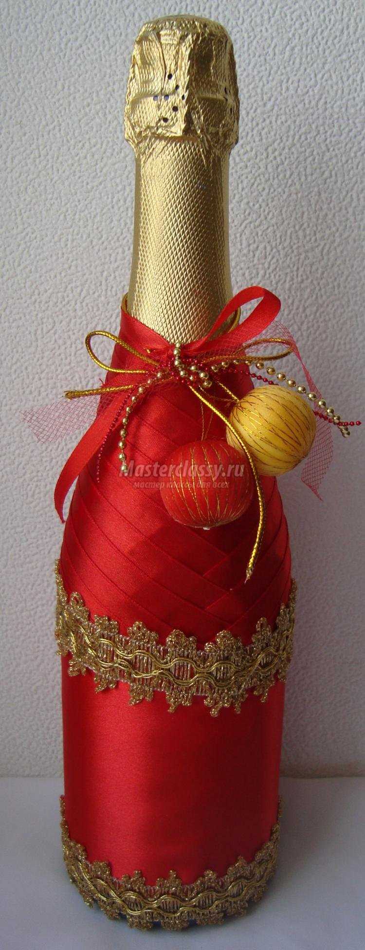 Using satin ribbons, you can decorate not only an unnecessary bottle, but also filled with a drink. It can be a wedding champagne or just a unique decoration of a festive table. Such an unusual surprise is always a pleasure to make to close people.