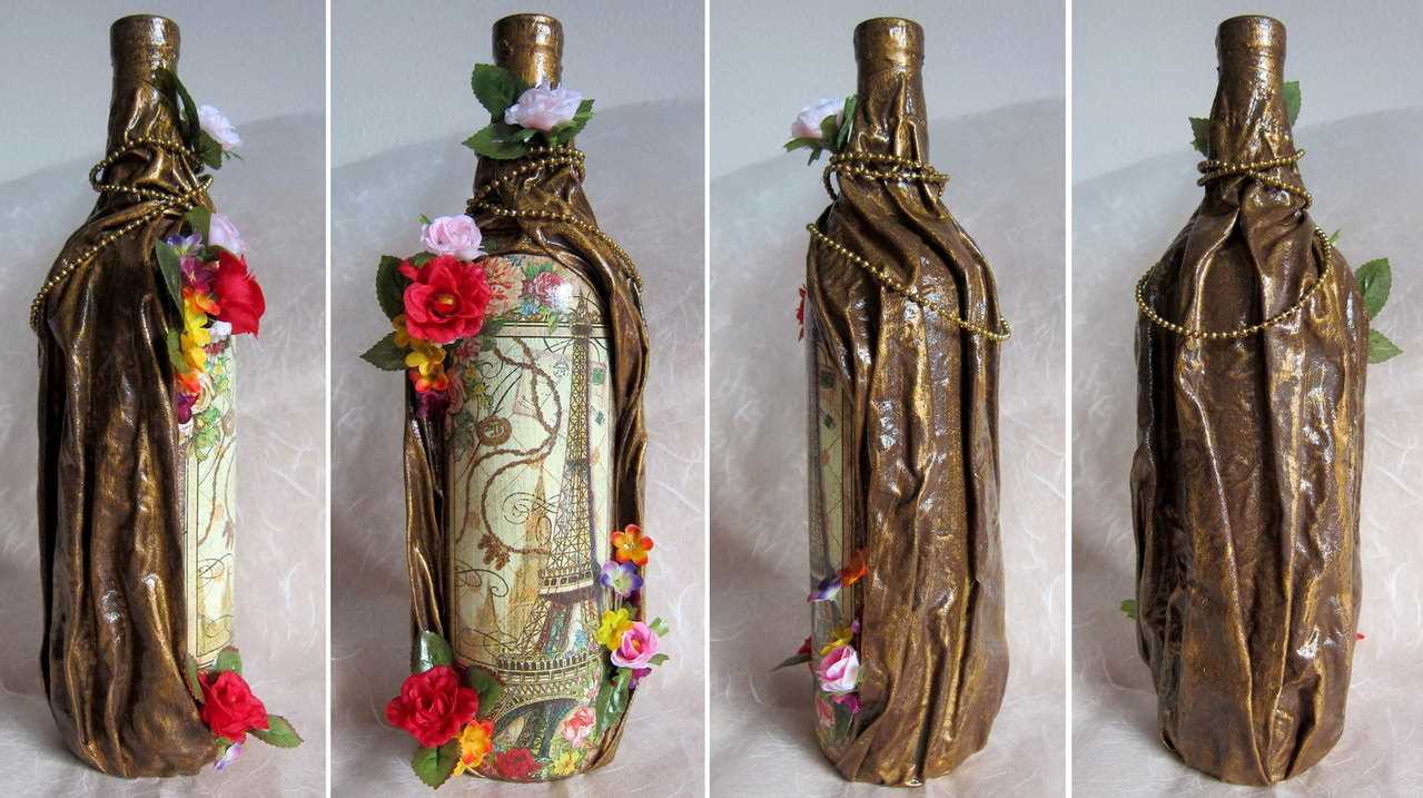 This method is the decoration of bottles with napkins or cloth. For work you will need:
