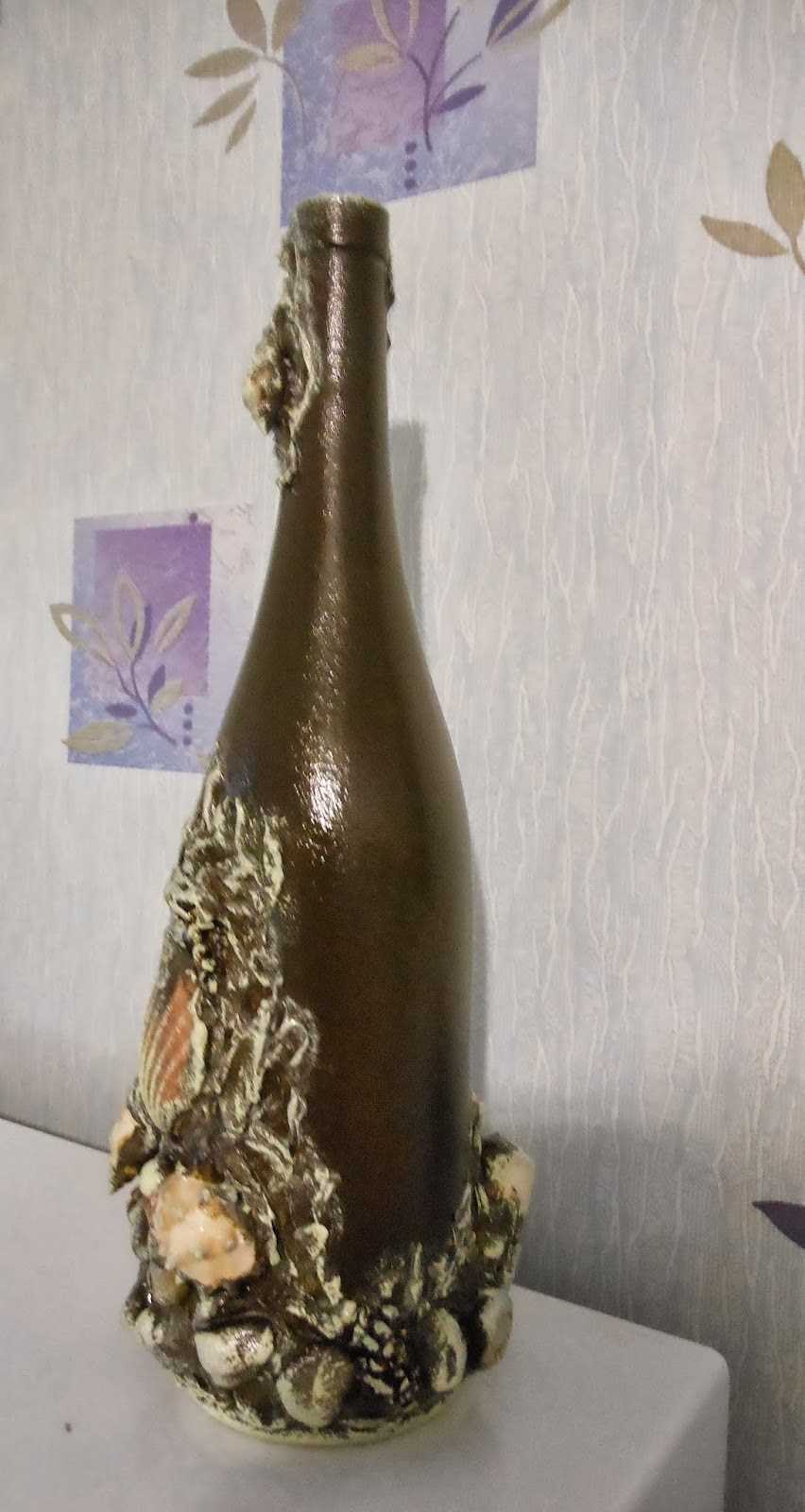 After complete drying, the decorative bottle is varnished. Using this technique, it’s realistic to create decorations for any interior.
