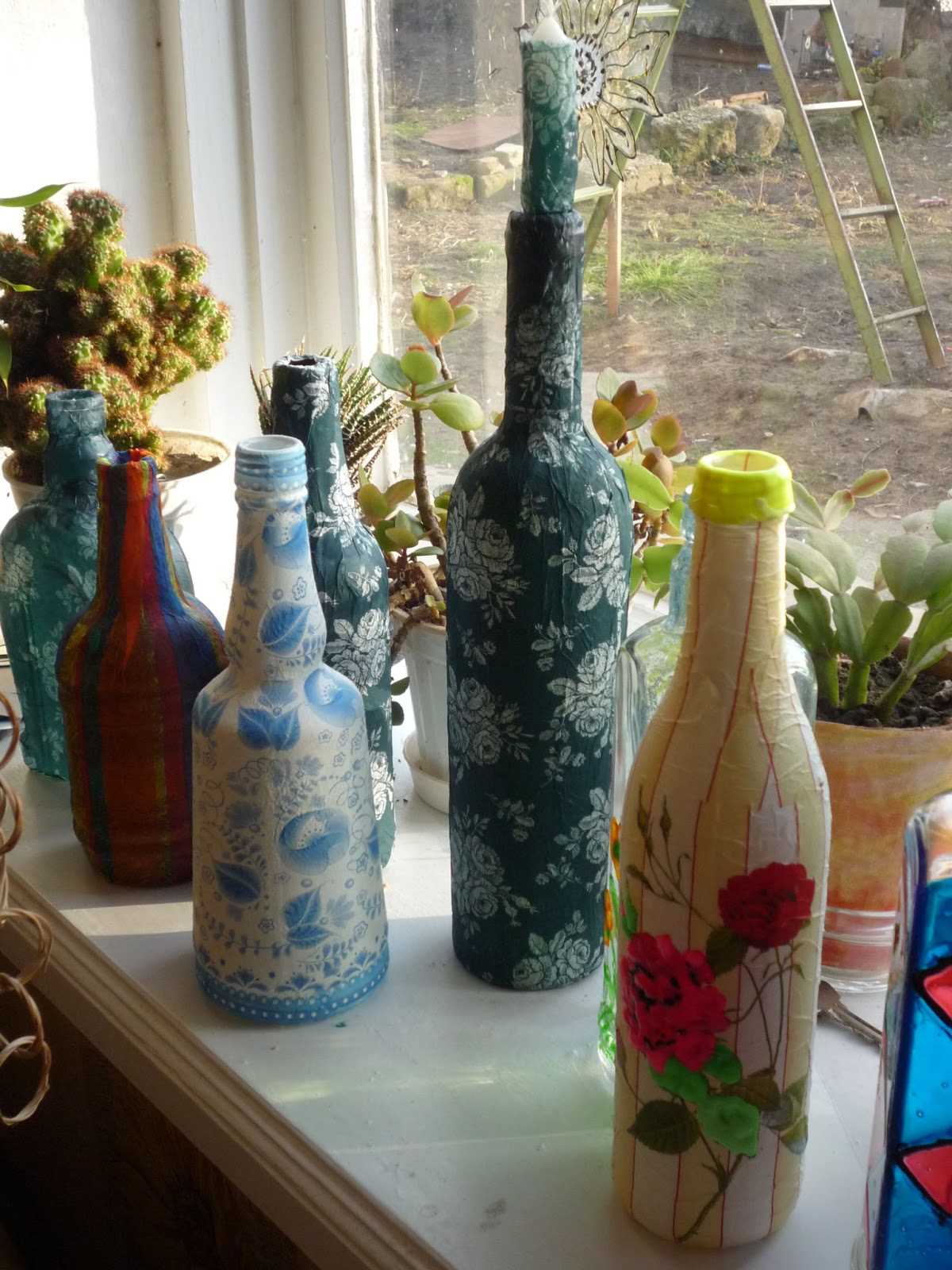 The bottle can be wrapped with fabric, this will make it softer and more beautiful.