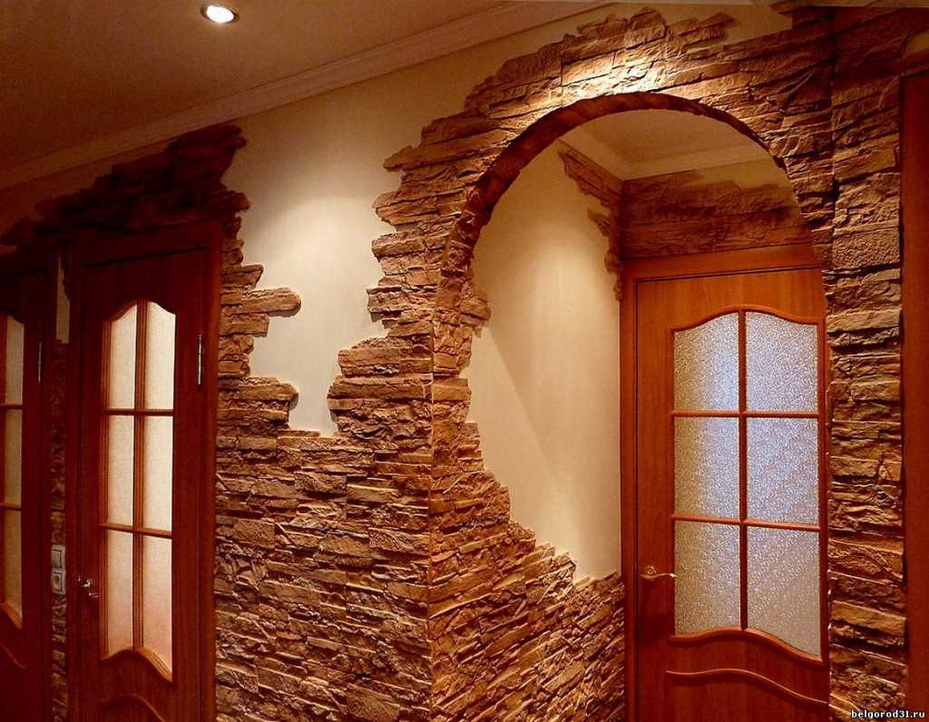 Experts do not recommend the use of artificial stone in the interior of the apartment as the main background of the walls, with the exception of the hallway or toilet. In other rooms it is better to make a decorative panel, an arch for zoning, columns or to revetment a fireplace. If the interior does not have more vibrant elements, the main focus will be on stone decor. 2-3 elements with the same facing material of a calm shade look good. - The quality of the masonry.