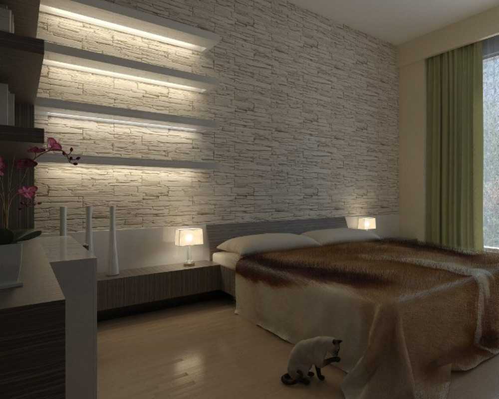 Properly selected stone, light in the bedroom will create a special atmosphere