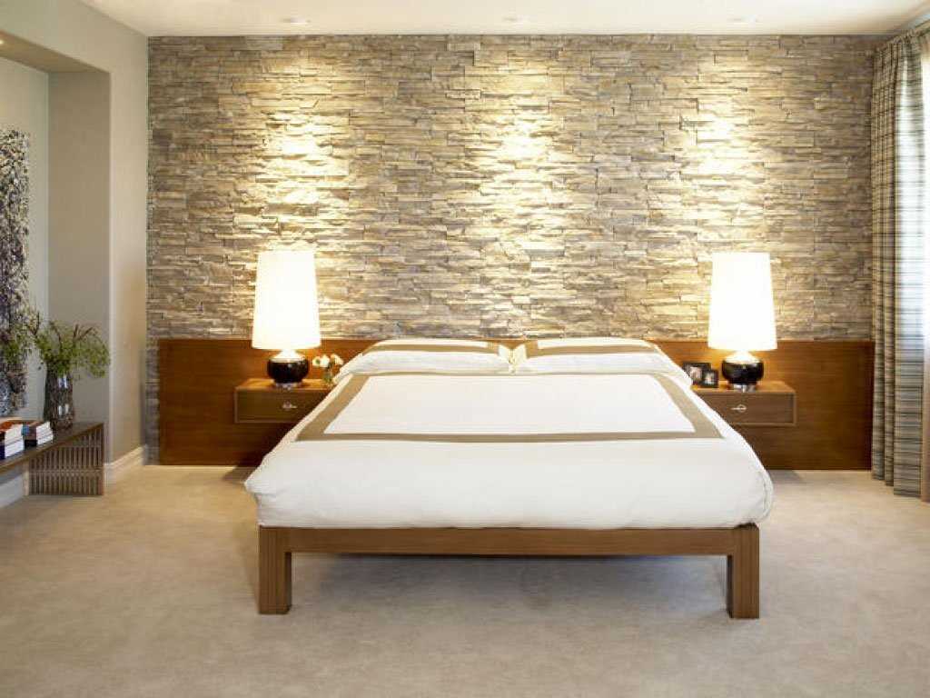 Wall decoration in the bedroom can be done with decorative stone