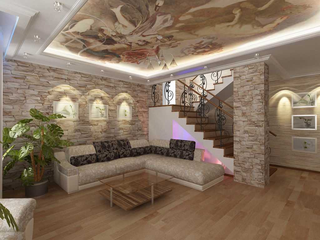 Recently, a rough texture in the living room and hallway was a curiosity, today it is quite in demand for living rooms. Depending on the design tasks, one or another type of texture is selected to perform spectacular decoration of different surfaces: