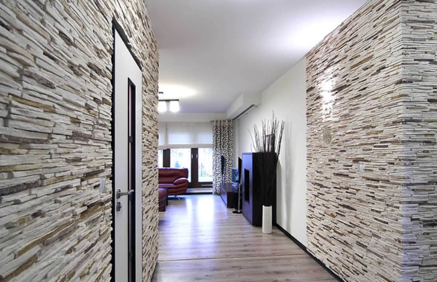 Wall decoration in the corridor can be made with decorative stone