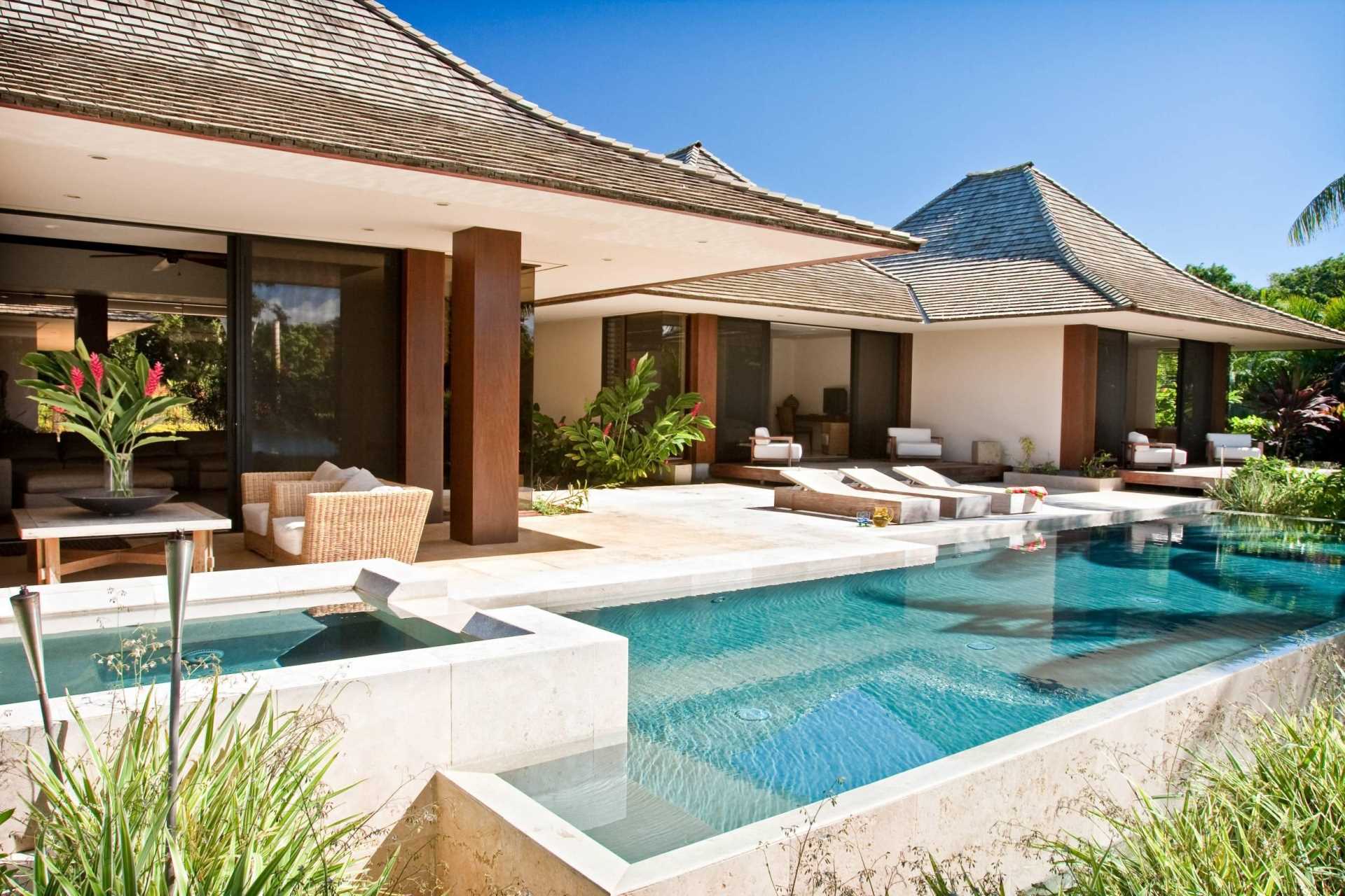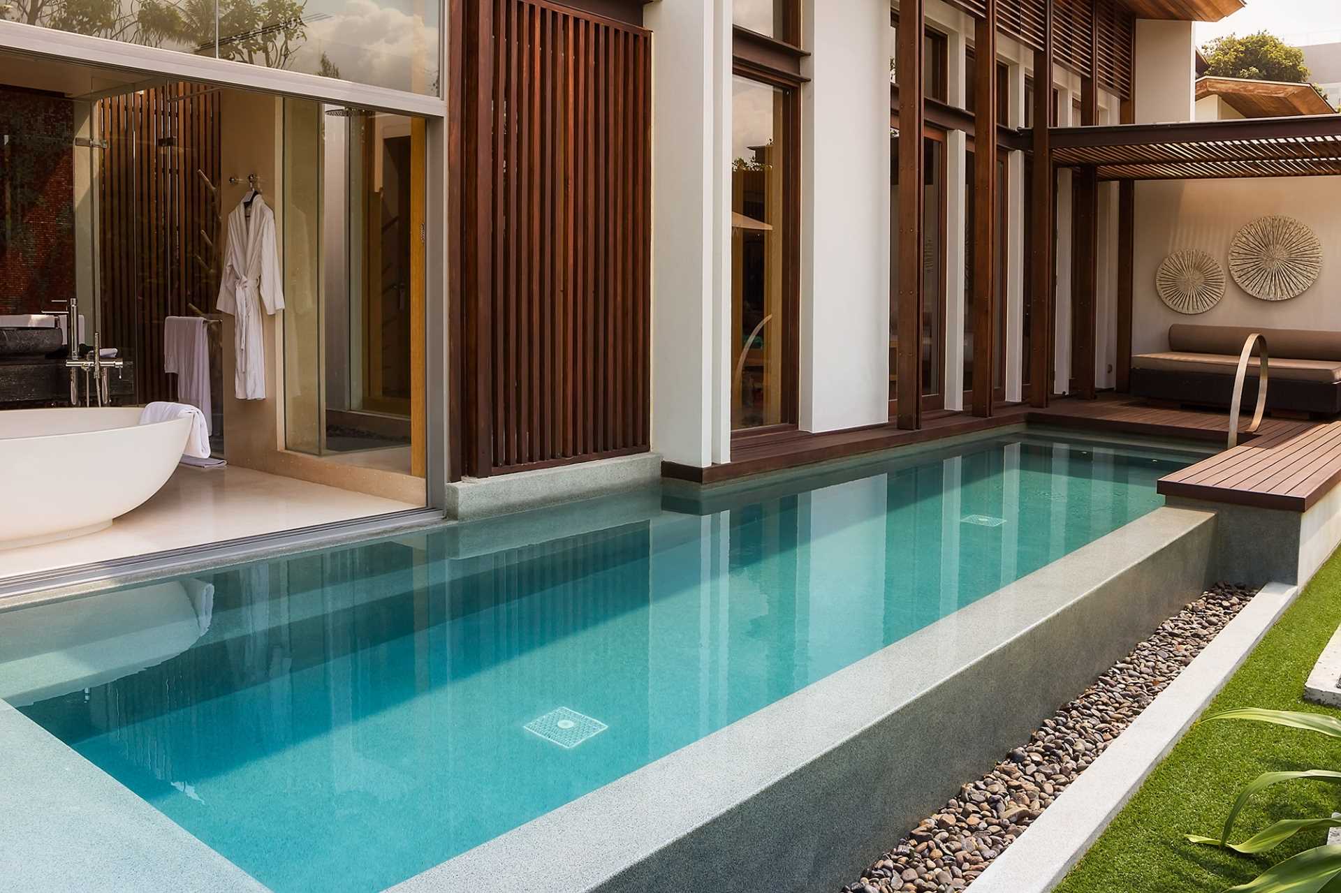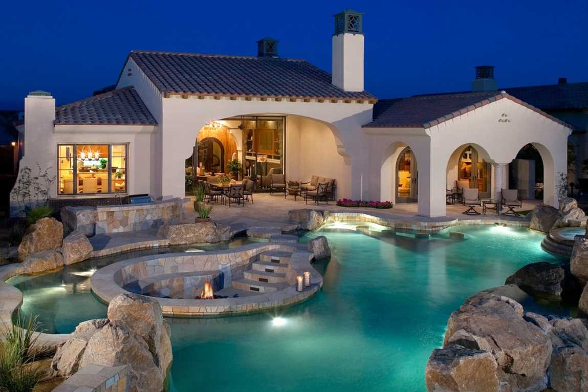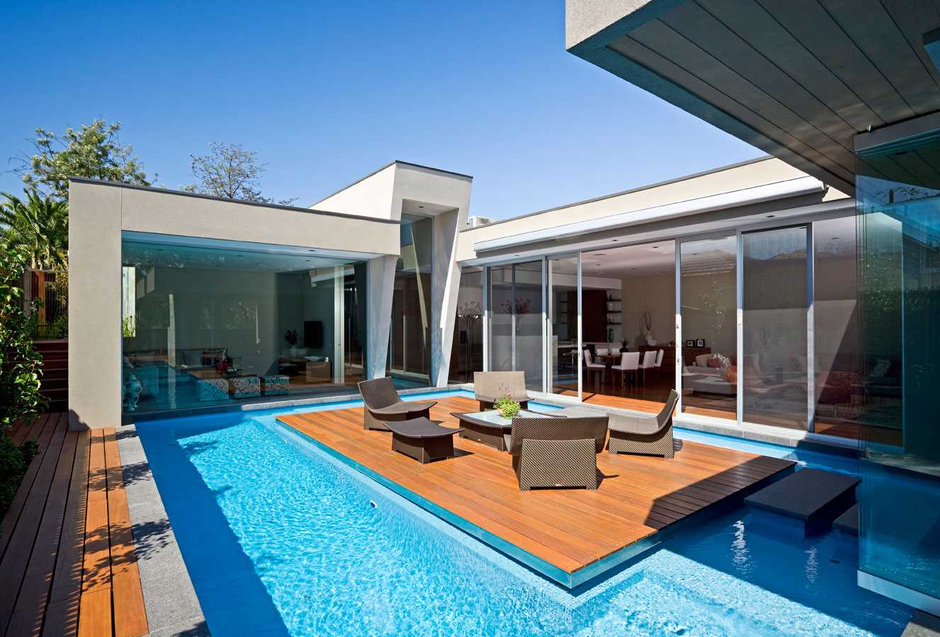 The selected type of pool will directly affect the design features. For example, an outdoor pool can be easily equipped with fountains; beach furniture is perfect for the interior of the courtyard, but it is difficult to use such decorative elements in closed ones. In addition, the design of the pool indoors and outdoors will be very different, so you need to start the design project with the definition of the type of structure. The choice of the shape and size of the pool depends on the type of reservoir and landscape features of the site.