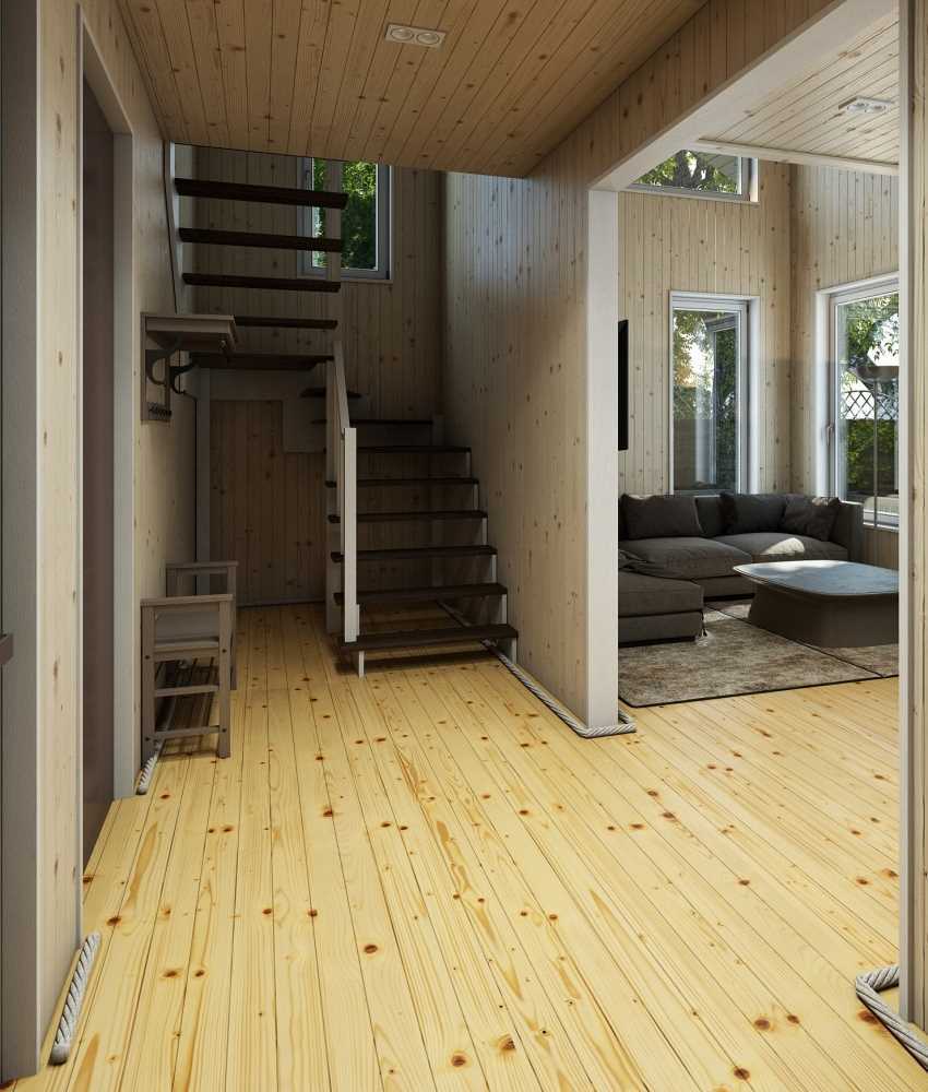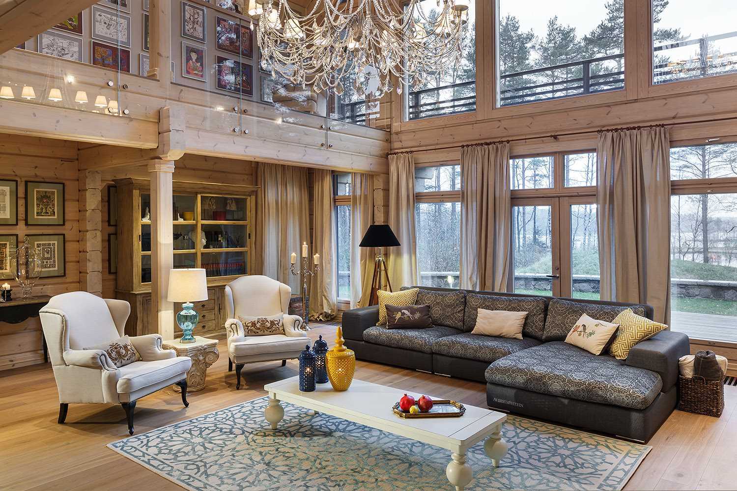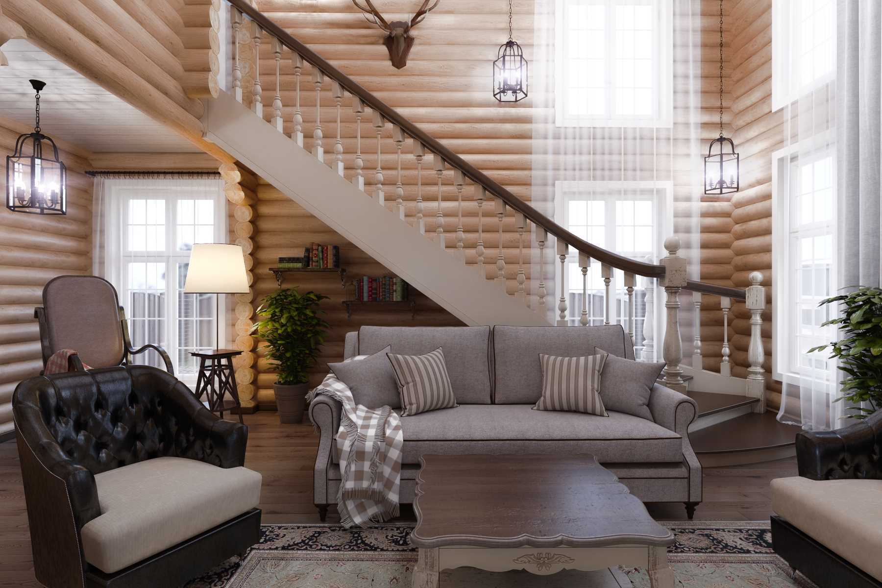 Design a living room in a wooden house