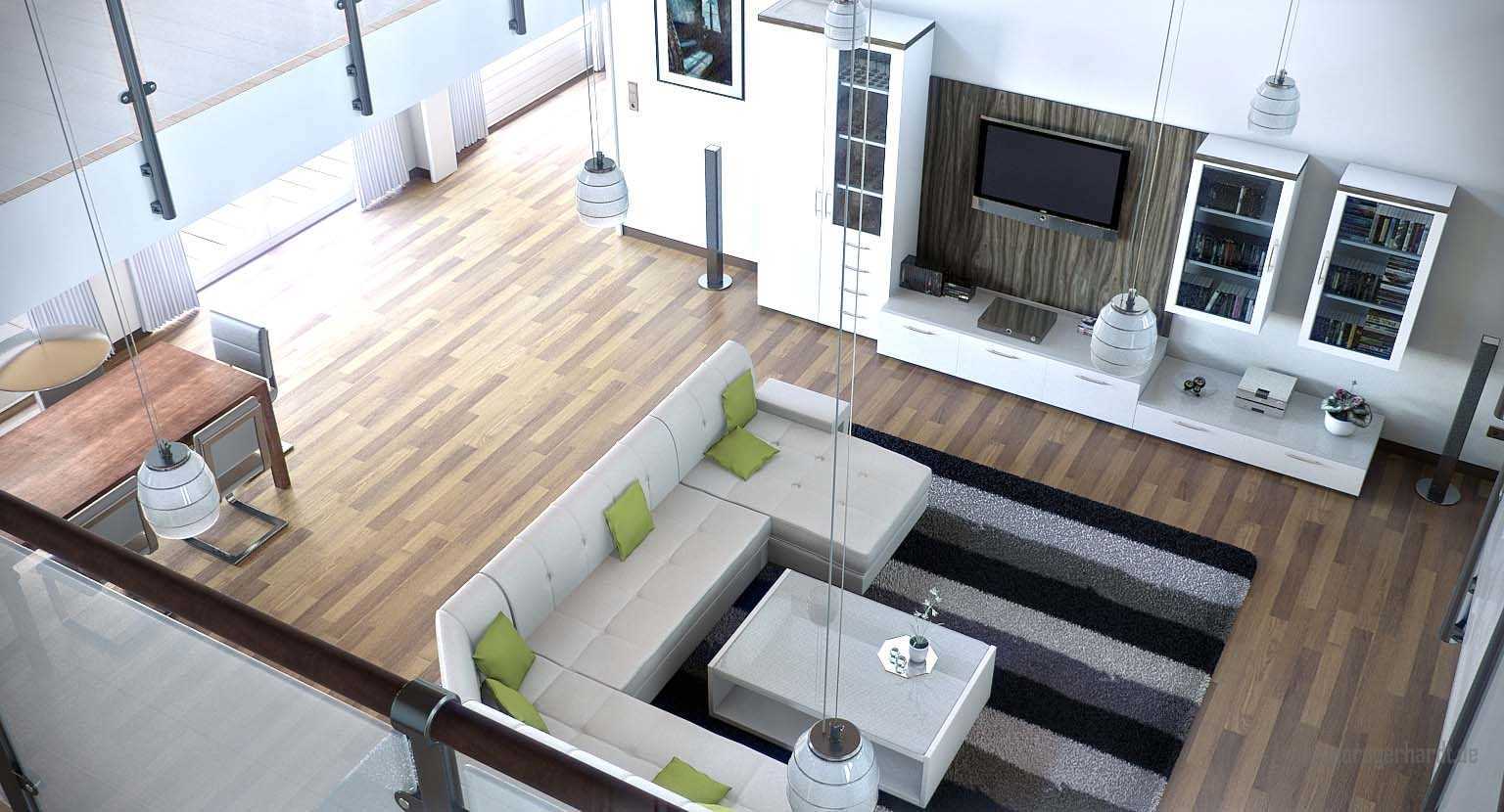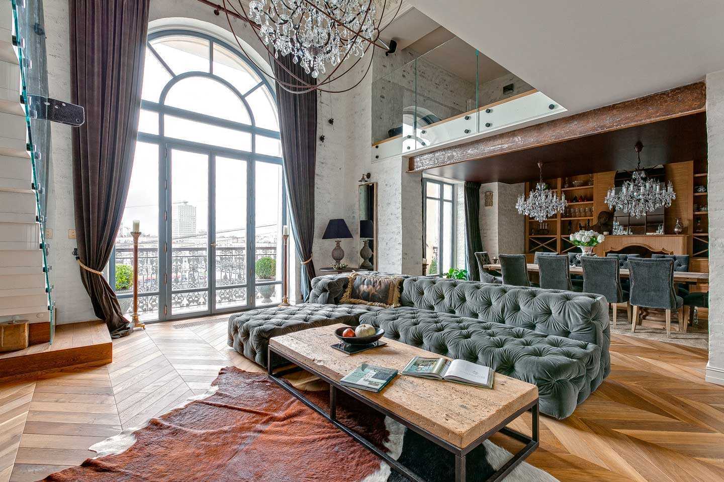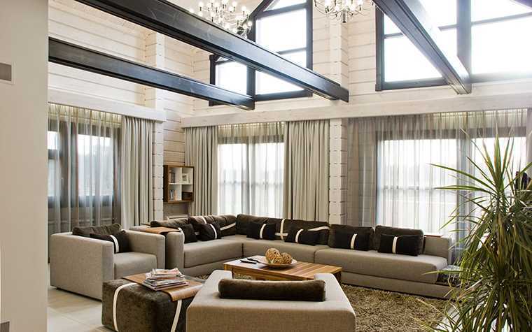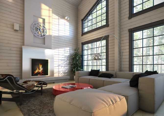 - the sun's rays illuminate the living room immediately from two levels of windows, which will not allow you to leave any corner of the room in the shade;