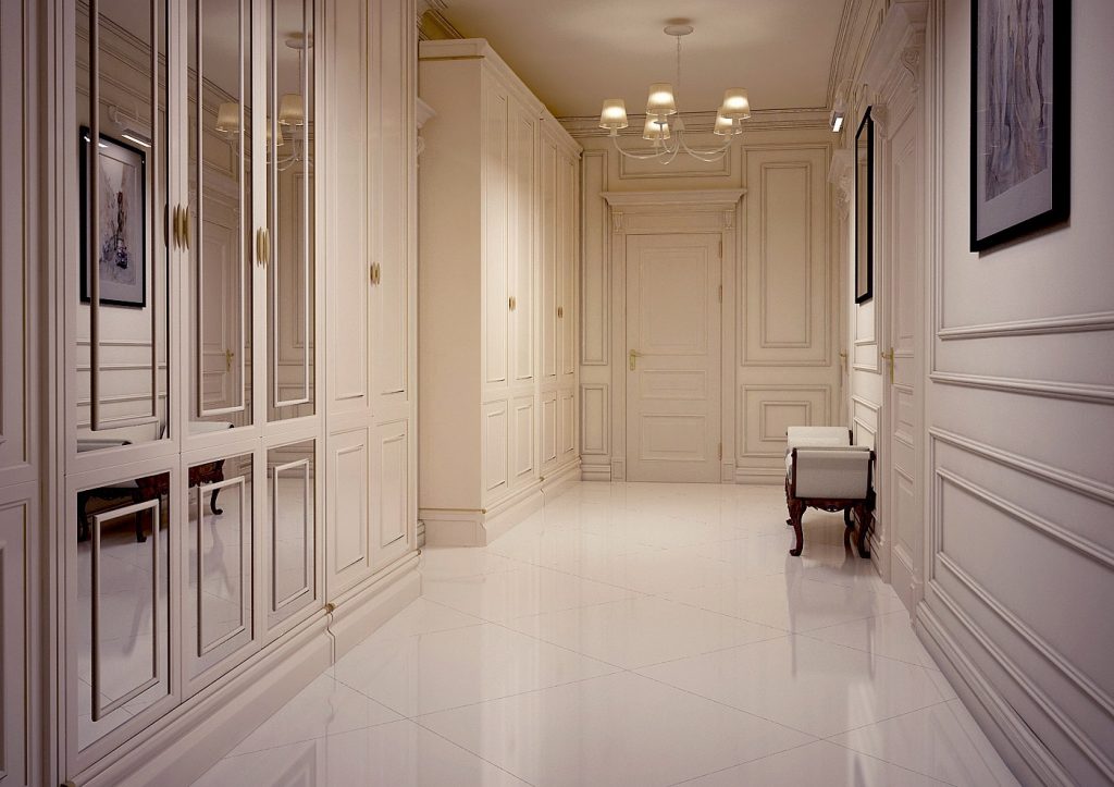 Ceramic floor in a narrow corridor