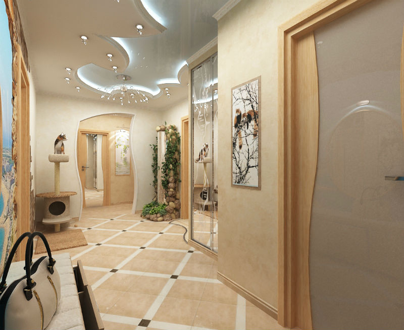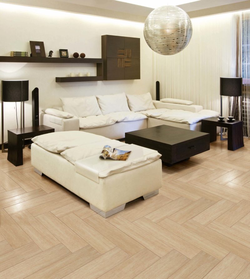 Thanks to the artificial coating on the tiles, the floor design is given any texture. Previously, 10-15 years ago, tiles were laid exclusively in bathrooms, toilets, and also for hallways. Now such flooring is done everywhere, for all rooms. Installation of underfloor heating using hot water or electrical equipment completely eliminates the side effect of a cold surface. Of course, this pleasure is worth a lot of money, but its beauty can not be compared with anything.