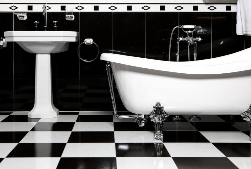Ceramic flooring in the bathroom of a wooden house