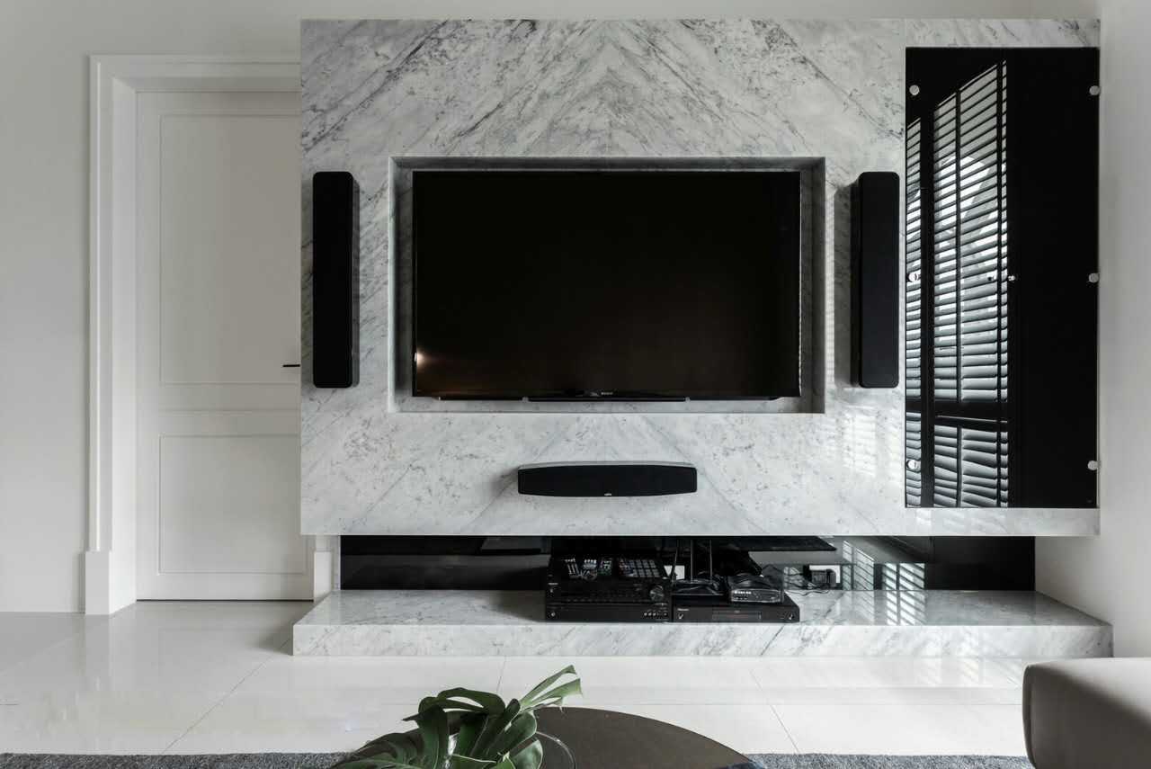 The original wall cladding is an excellent means of zoning large rooms. The combination of a stone surface of different textures - marble tiles, crushed sandstone and “wild” stone in the form of masonry will look inimitable.