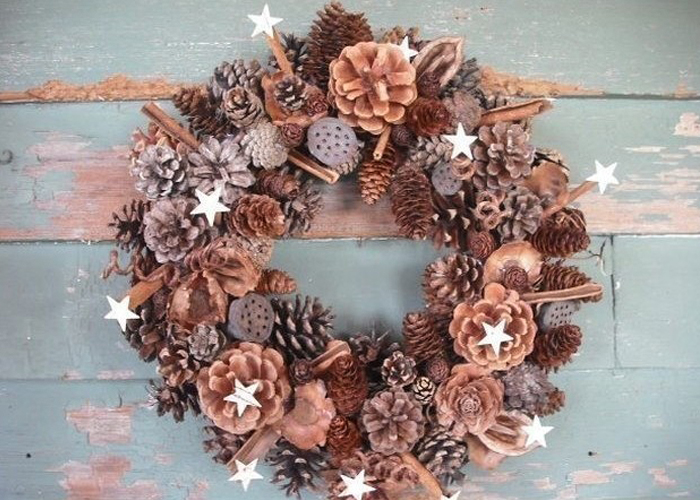 New Year’s wreaths on the door made of branches with cones, today are quite common and every year the number of such decorations only increases.