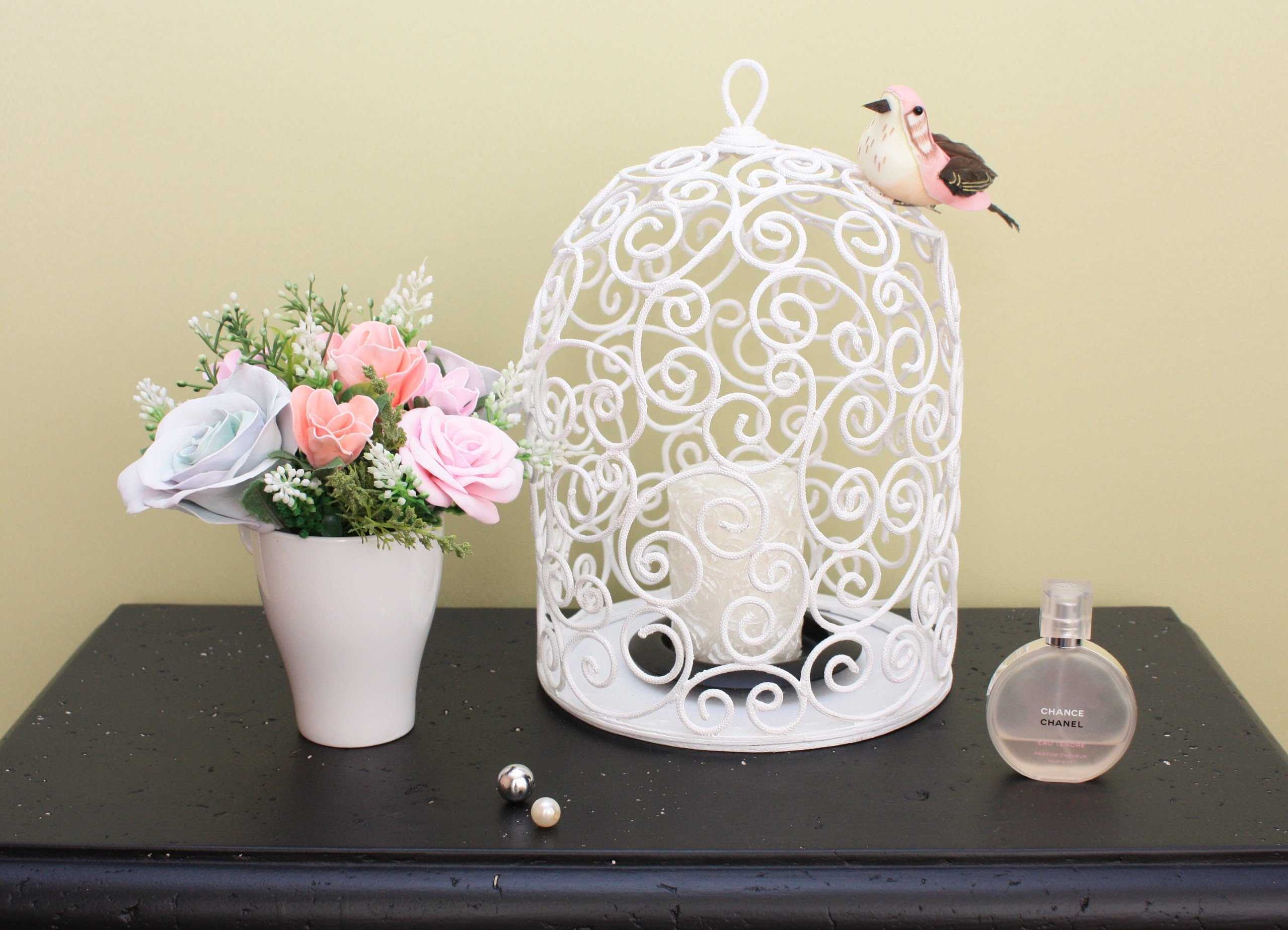 A small cell can be decorated with flowers made of foamiran - a plastic sheet material that has the ability to “remember” the shapes given to it, due to which the flowers from it look realistic. A beautiful scented candle placed inside the cage will decorate the interior of a romantic bedroom.