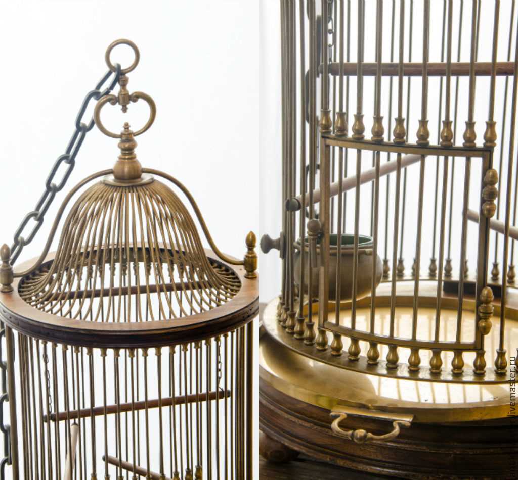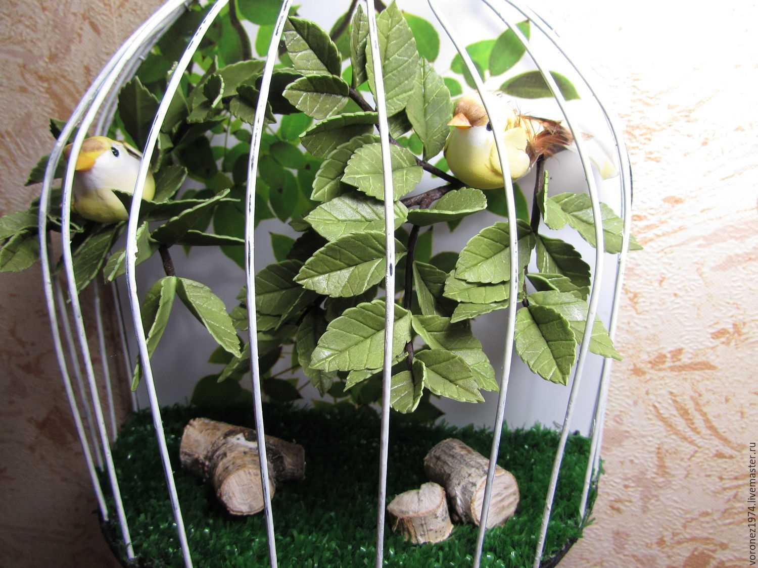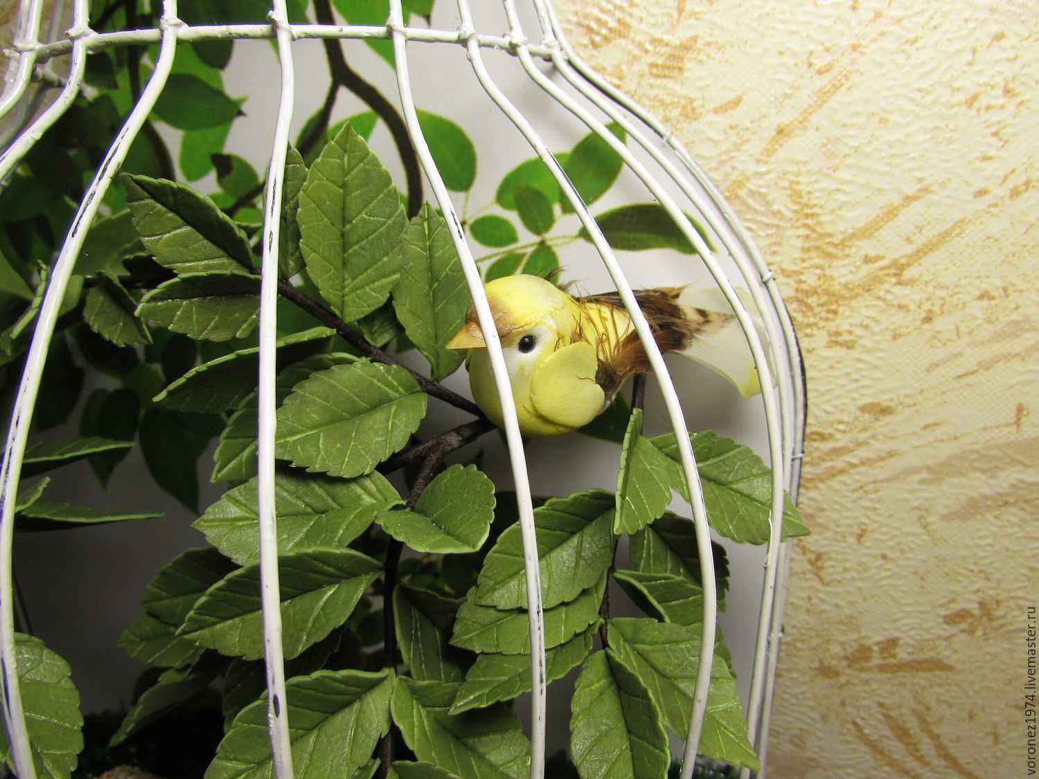 If you decide to settle a feathered friend inside the cage, you can also create the appropriate surroundings for him - elegant thin rods, ornaments in the form of leaves, twigs look spectacular from the outside, and inside you can hang an openwork feeder, a mirror in an elegant frame. You can decorate the cell inside and out using thin satin ribbons of delicate shades.