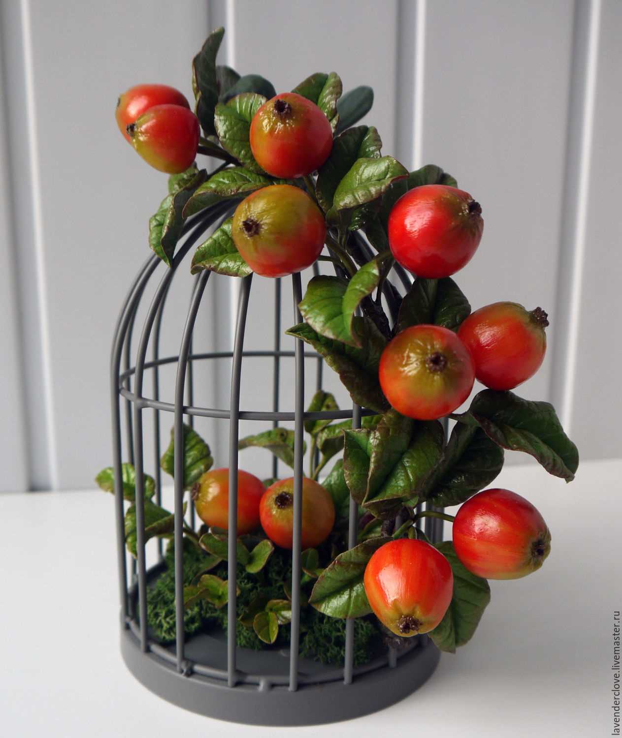 If you don’t want to take care of a live bird, “put” a dummy in a cage. You can create a whole composition - a nest with bird eggs-dummies, fruit and flower decoration from twigs, flowers and dummies of berries, fruits. Bright autumn red-orange palette will decorate the room, bring warmth of the autumn garden to it.