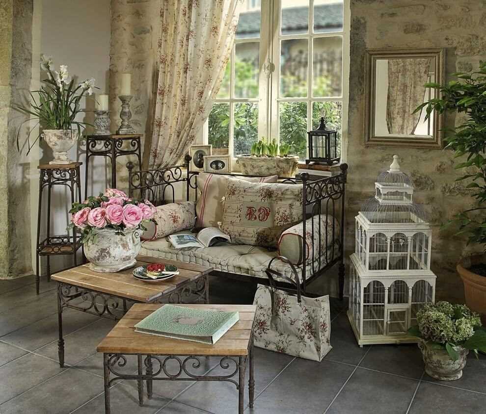 The style of the French provincial village is characterized by flowers and birds. It is not surprising that a cage with a song or decorative bird looks harmonious in such an interior. And if you don’t want tweets to wake up in the morning? It is enough to leave a cage or its imitation in the interior of the house.